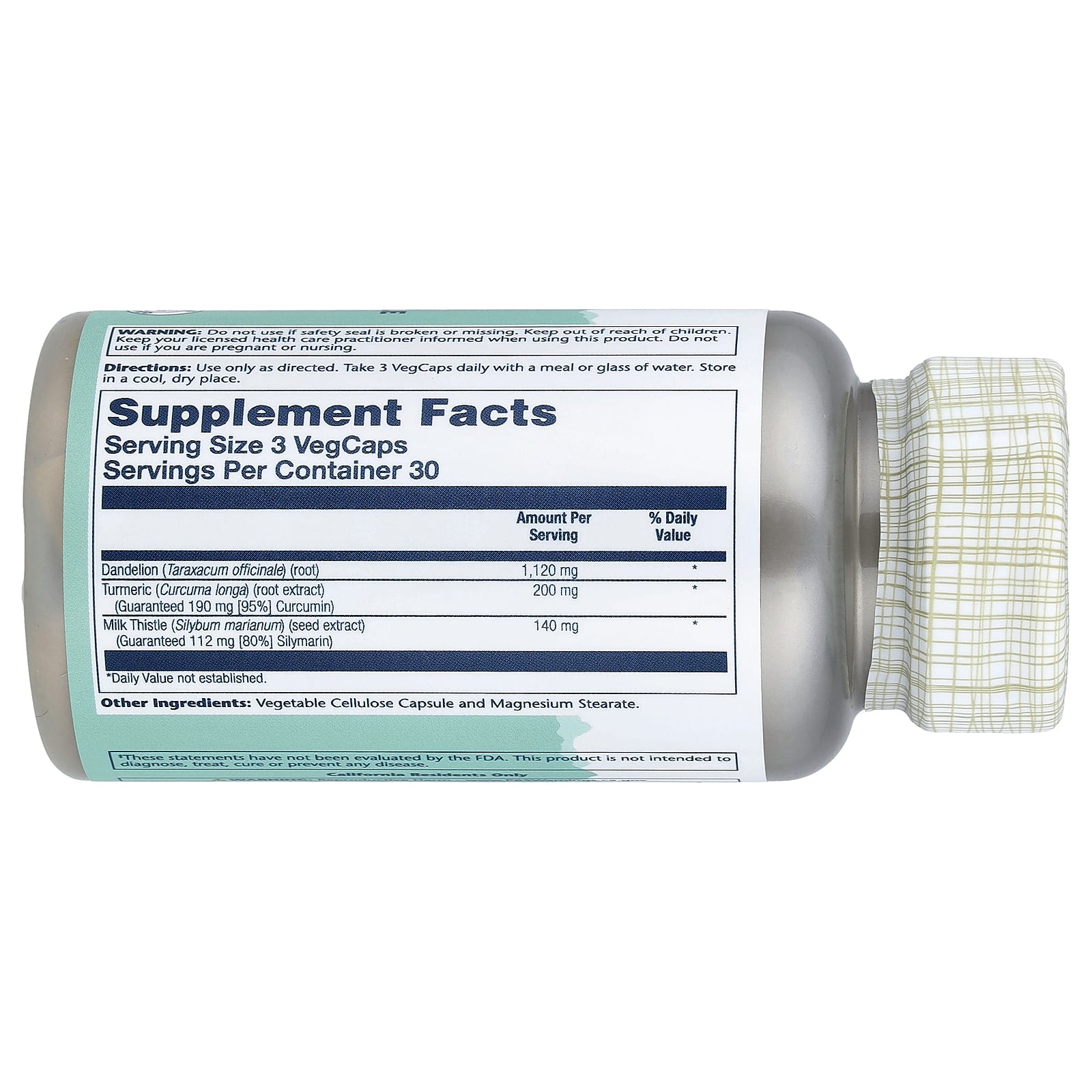 Use only as directed. Take 3 VegCaps daily with a meal or glass of water.