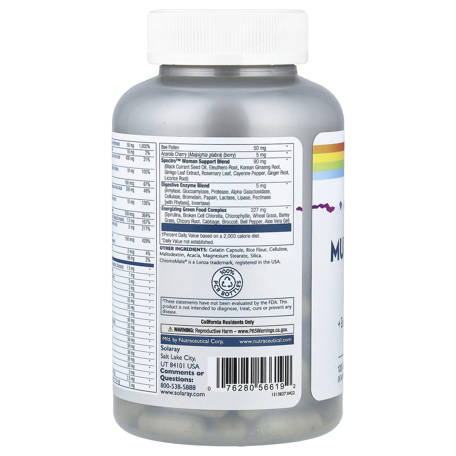 Spectro Woman - это инновационный мультивитаминный комплекс антиоксидантов, разработанный для удовлетворения потребностей активных женщин, которым требуется комплексное средство в удобной форме для приема 4 раза в день. Эта формула сочетает в себе более 80 ингредиентов, включая оптимальное количество коферментных витаминов, хелатные и микроэлементы полного спектра, ферменты и каротиноиды. Spectro Woman также содержит важные антиоксиданты, бодрящую зелень и травяную смесь для поддержки энергии и незаменимых жирных кислот, в которую входят женьшень, гинкго, масло семян черной смородины и многое другое.