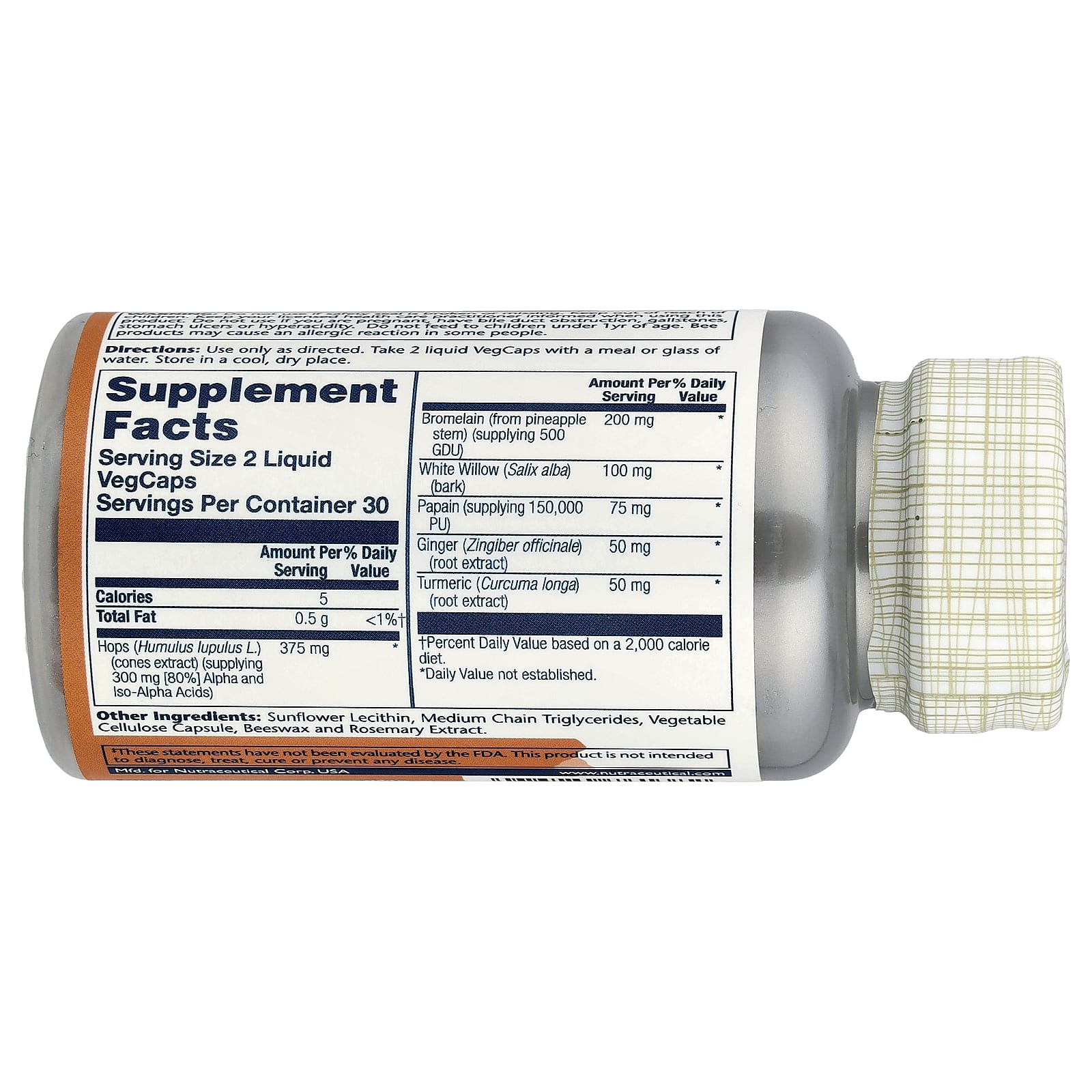 | Хмель (Humulus lupulus L.) (экстракт шишек) (поставка 300 мг [80%] альфа и Изо-альфа-кислоты) | 375 мг | * |