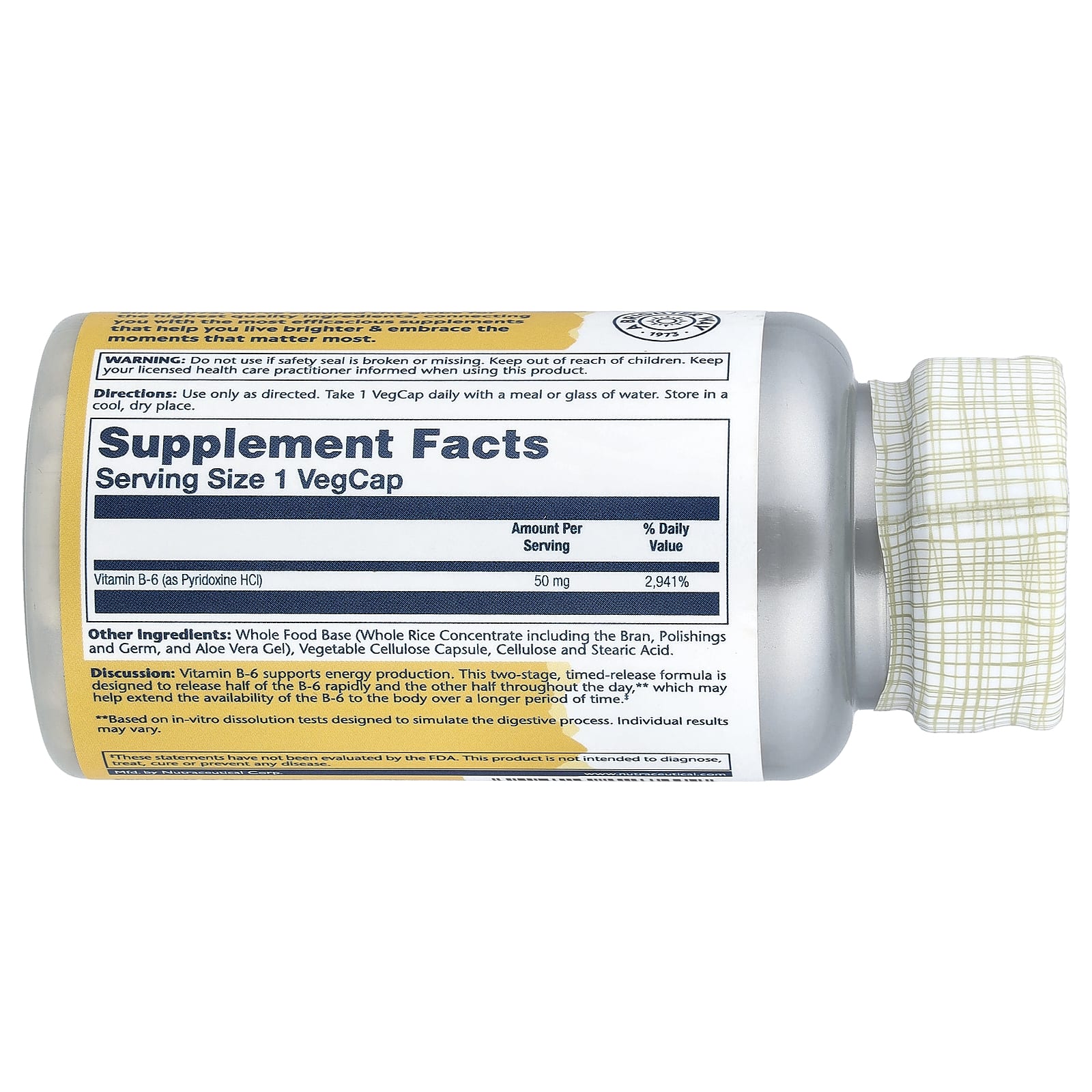 Solaray, Timed Release, витамин B6, 50 мг, 60 растительных капсул