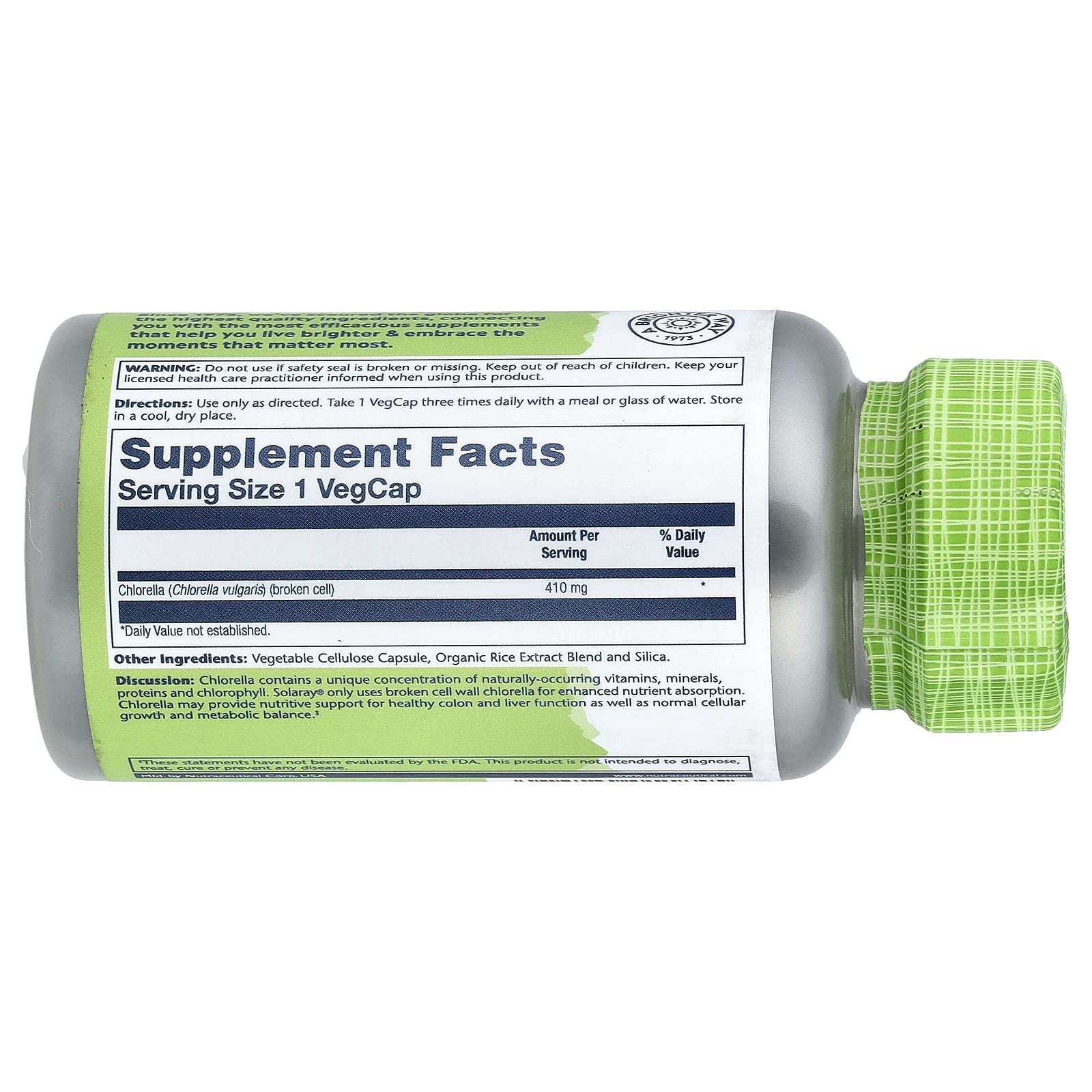 Хлорелла содержит уникальную концентрацию натуральных витаминов, минералов, белков и хлорофилла. Solaray® использует только хлореллу с разрушенной клеточной стенкой для лучшего усвоения питательных веществ. Хлорелла может обеспечить питательную поддержку здоровой функции толстой кишки и печени, а также нормального роста клеток и метаболического баланса.