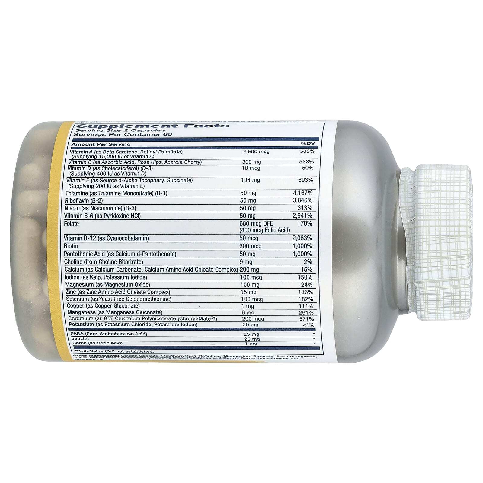 Прием дважды в день — одна из популярных добавок Multi-VitaMins™ от Solaray. Две капсулы обеспечивают полный спектр витаминов и минералов. Эта усовершенствованная формула содержит хелаты минеральных аминокислот, повышающие биодоступность, антиоксиданты для защиты от повреждения свободными радикалами и витамины группы B для энергетической поддержки.
