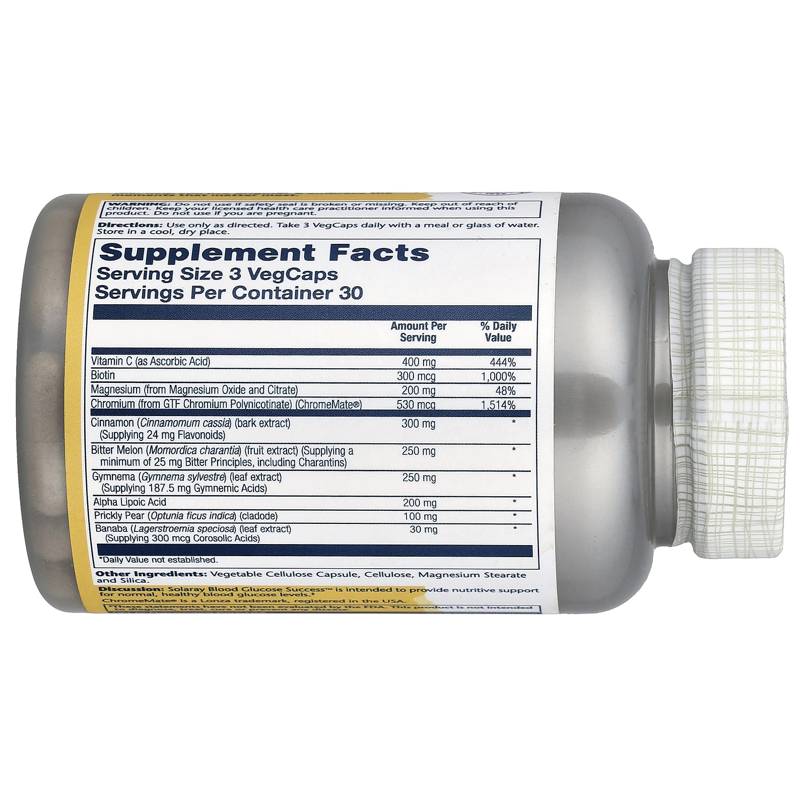 | Хром (из полиникотината хрома GTF) (ChromeMate®) | 530 мг | 1,514% |