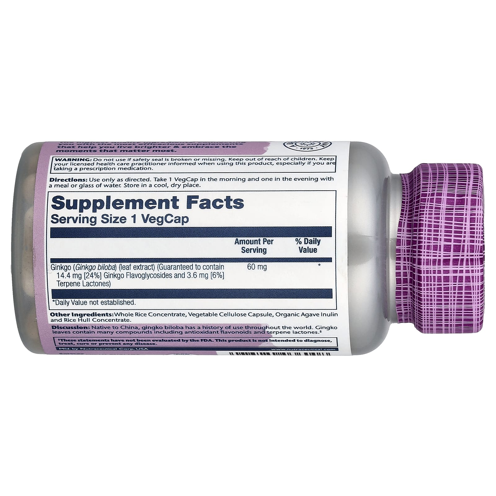 | Гинкго (Ginkgo biloba) (экстракт листьев) (гарантированно содержит 14,4 мг [24%] флавонгликозидов гинкго и 3,6 мг [6%] терпеновых лактонов) | 60 мг | * |