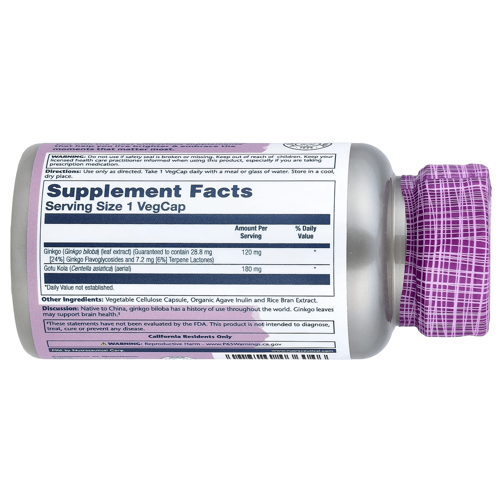 | Гинкго (Ginkgo biloba) (экстракт листьев) (гарантированно содержит 28,8 мг [24%] флавонгликозидов гинкго и 7,2 мг [6%] терпеновых лактонов) | 120 мг | * |
