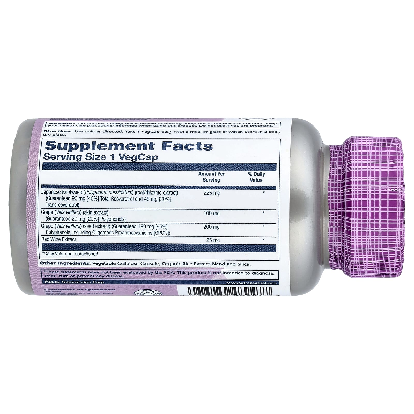 | Горец японский (Polygonum cuspidatum) (экстракт корня / корневища) (гарантировано 90 мг [40%] всего ресвератрола и 45 мг [20%] трансресвератрола) | 225 мг | * |