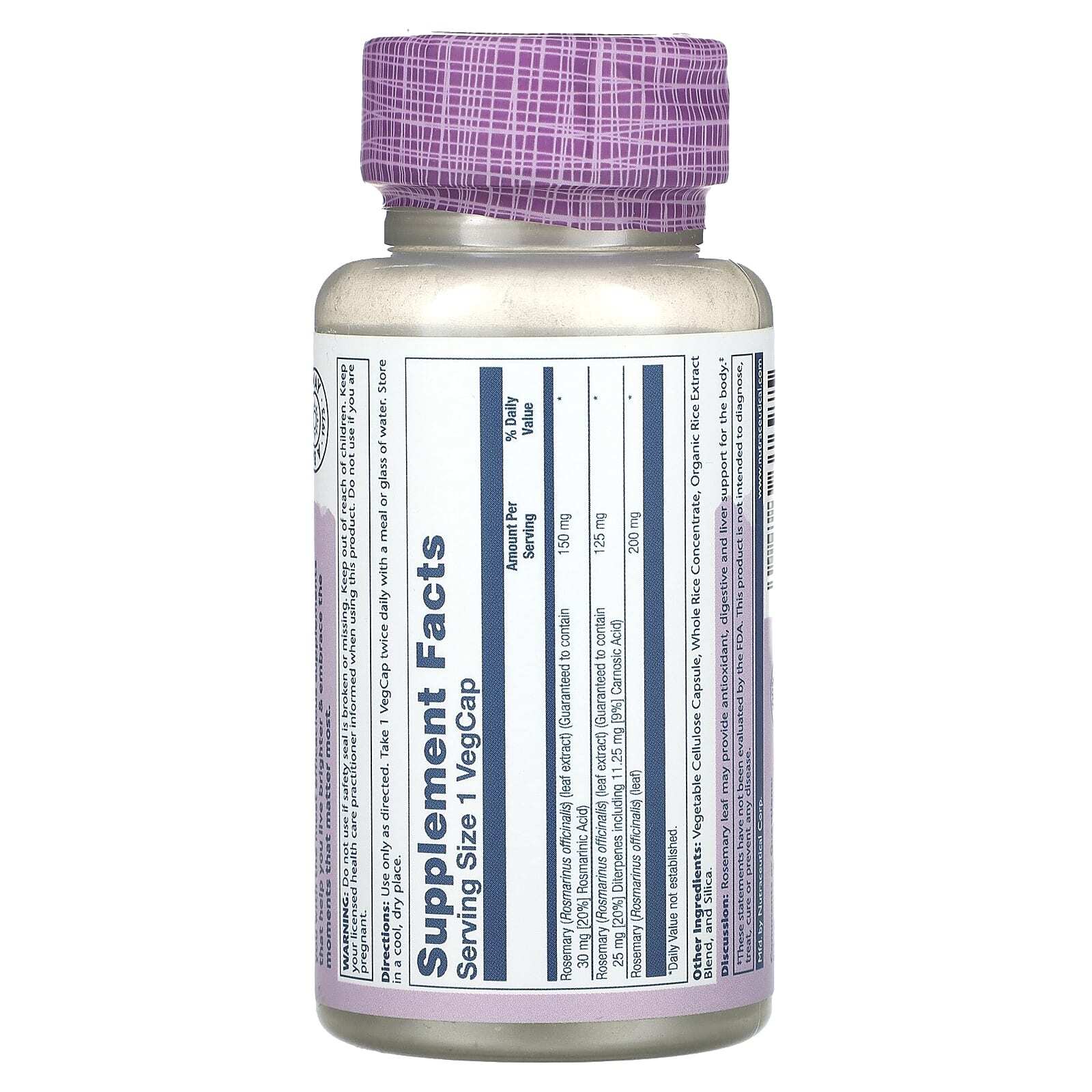 Розмарин (Rosmarinus officinalis) (экстракт листьев) (гарантированно содержит 25 мг [20%] дитерпенов, включая 11,25 мг [9%] карнозиновой кислоты) | 125 мг | * |