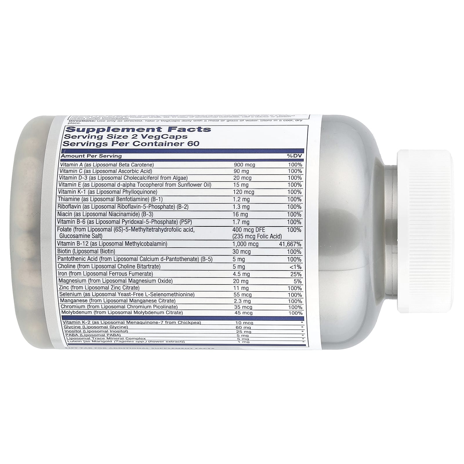 Высокоэффективная смесь из 33 липосомальных питательных веществ, включая 18 витаминов и минералов в количестве не менее 100% от суточной нормы.