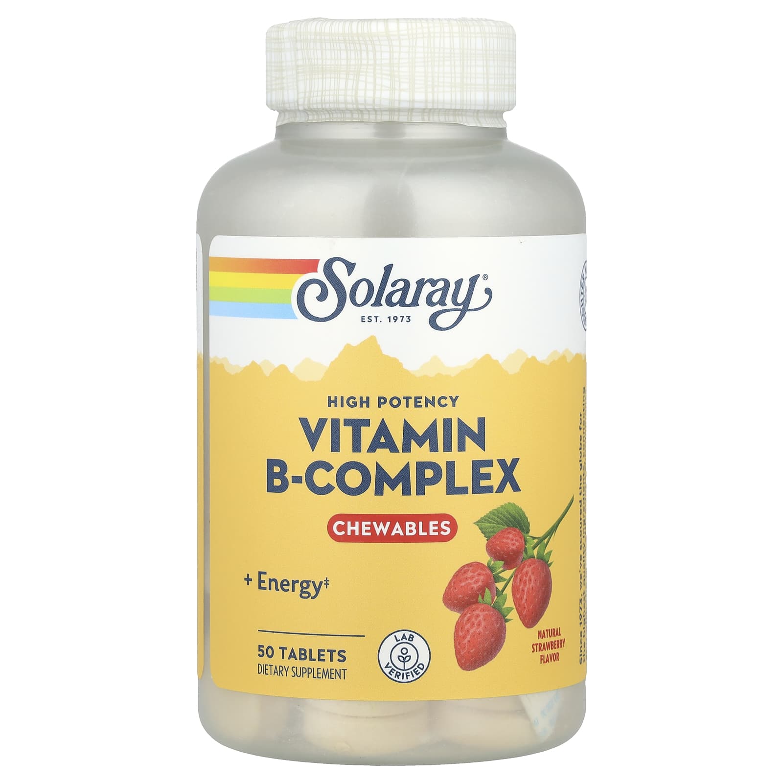 Solaray, жевательные таблетки с высокоэффективным комплексом витаминов группы B, натуральный клубничный вкус, 50 таблеток