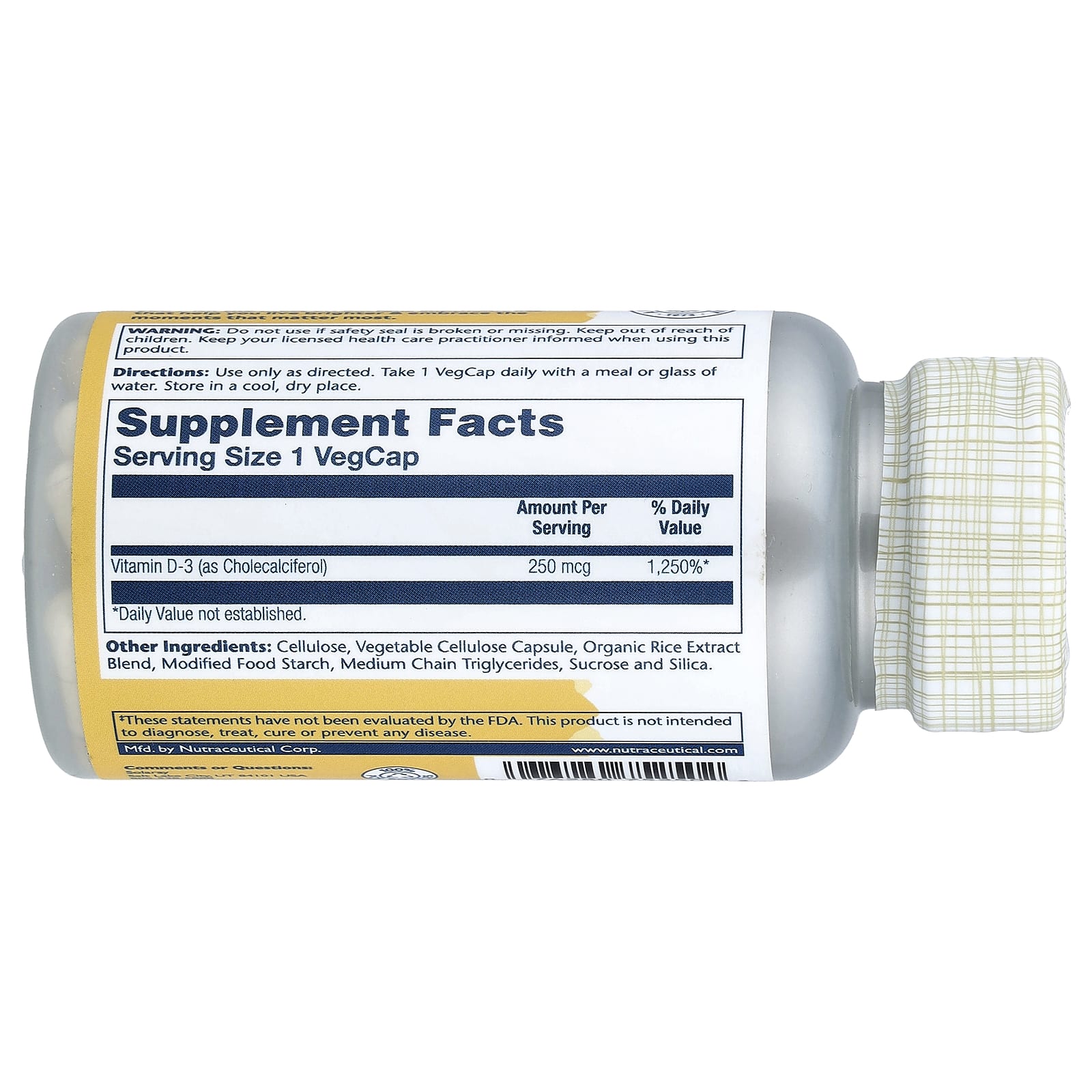 | Витамин D3 (в виде холекальциферола) | 250 мг | 1,250%* |