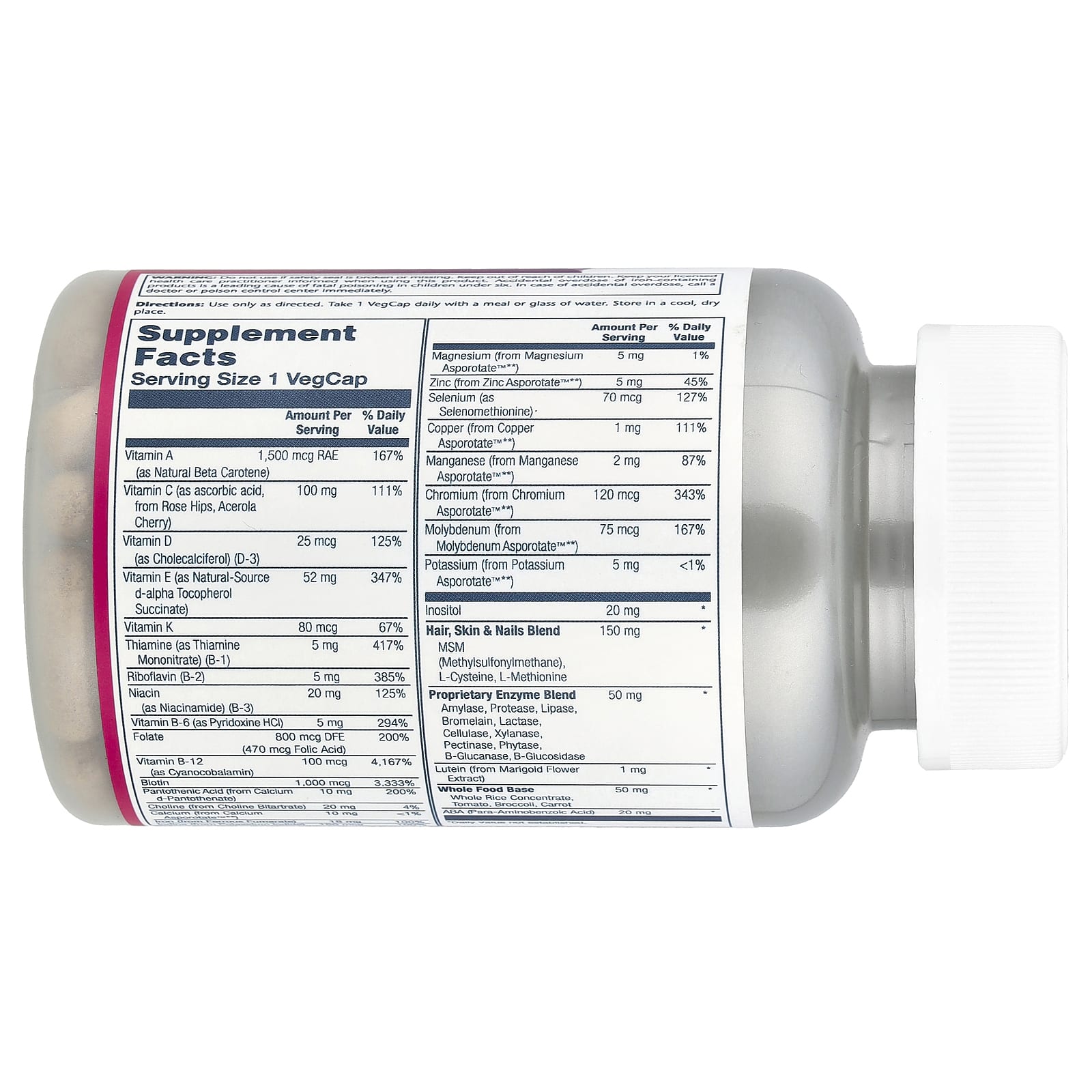Наш мультивитаминный комплекс Once Daily Woman, разработанный с учётом уникальных потребностей женщин, также содержит смесь МСМ, L-цистеина и L-метионина для здоровья волос, кожи и ногтей, а также комплекс витаминов группы B, которые помогут вам сохранить красивый и молодой вид. Мы также добавили лютеин для поддержки здоровья глаз и запатентованную смесь ферментов для пищеварения. А благодаря особым комплексам хелатных минералов, разработанным для улучшенного усвоения и эффективного использования, вы получаете полноценную поддержку женского здоровья.