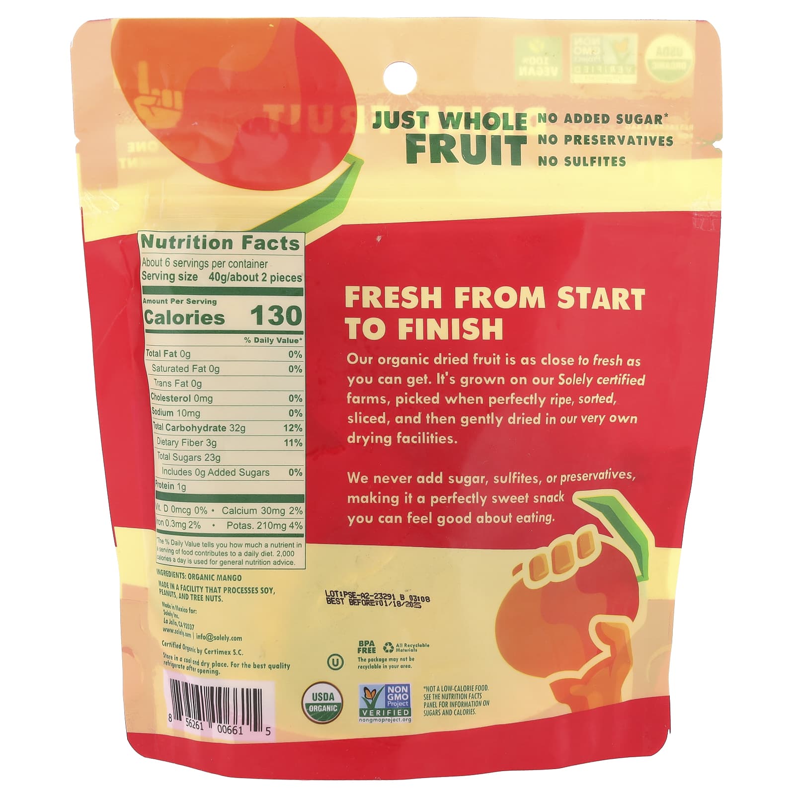 Мы никогда не добавляем сахар, сульфиты или консерванты, что делает его очень сладким перекусом, который вы можете съесть с удовольствием.