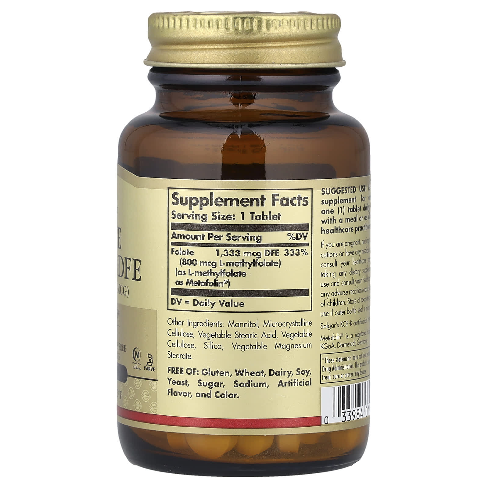 | Фолат (800 мкг L-метилфолата) (в виде L-метилфолата в виде Metafolin®) | 1333 мкг DFE | 333% |