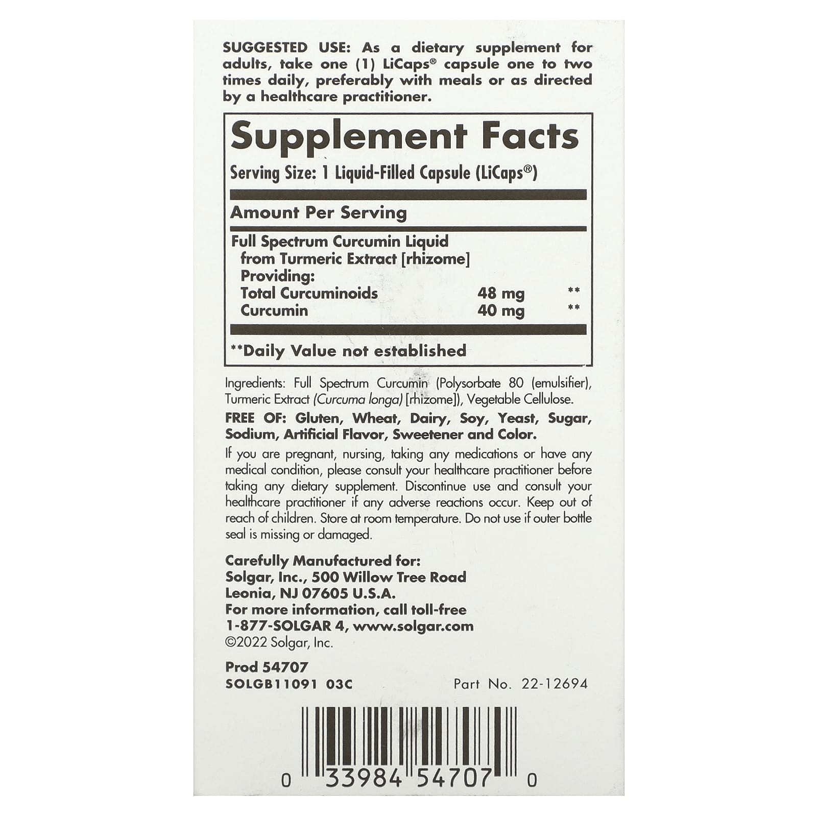 Одна из проблем при приеме куркумина связана с его ограниченной усвояемостью: организм может усвоить и использовать только часть полученного куркумина. При повышении усвояемости содержание активного куркумина увеличивается и используется организмом для поддержки здоровья суставов, мозга и иммунитета. Компании Solgar удалось вывести биодоступность и усвояемость на совершенно новый уровень.