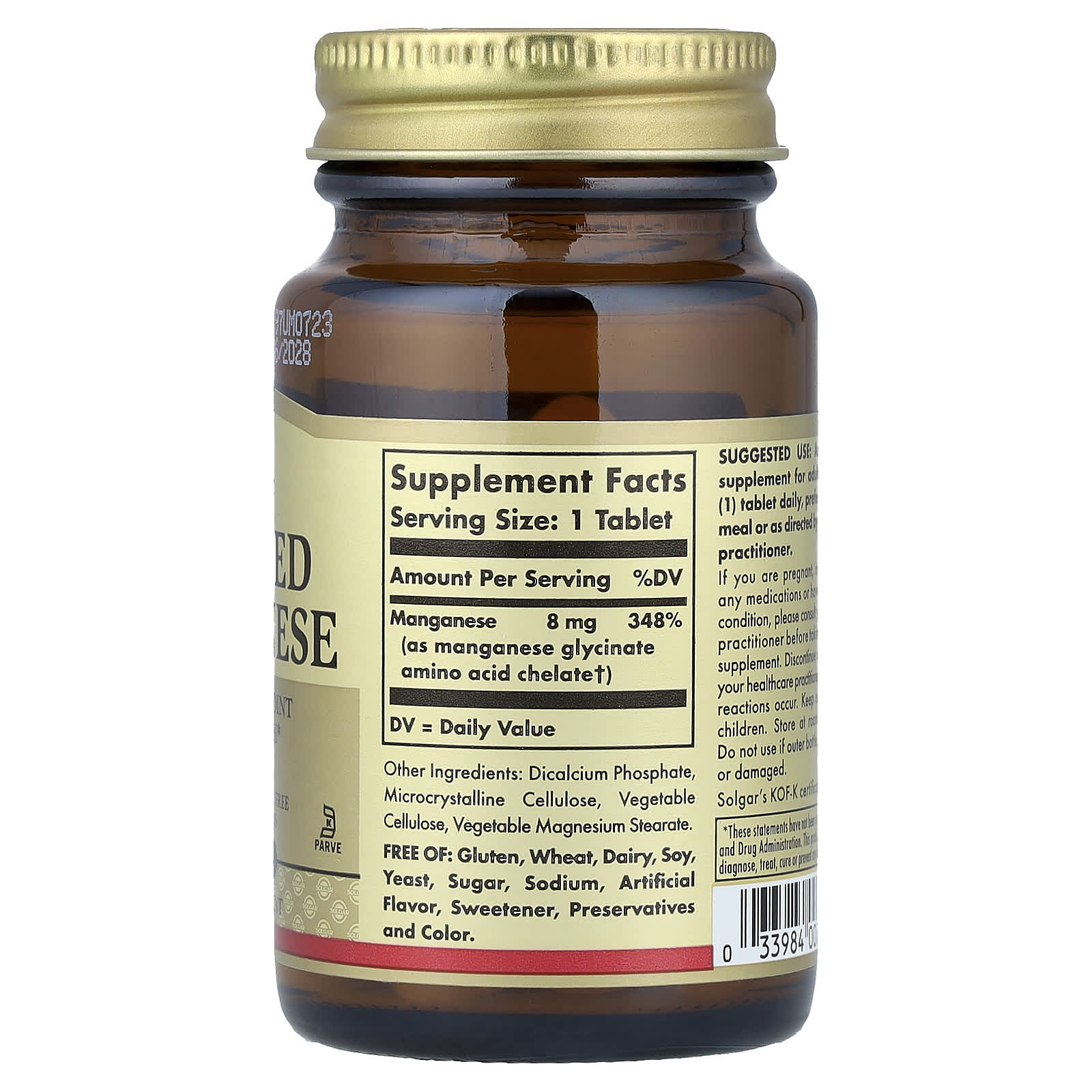 Марганец поддерживает здоровье костей и играет важную роль в здоровой работе суставов. Содержащие марганец ферменты необходимы для производства здорового хряща. Марганец также питает нервы и работает вместе с супероксиддисмутазой (СОД) в качестве антиоксиданта в клетках. Эта формула содержит патентованную форму хелатного марганца.