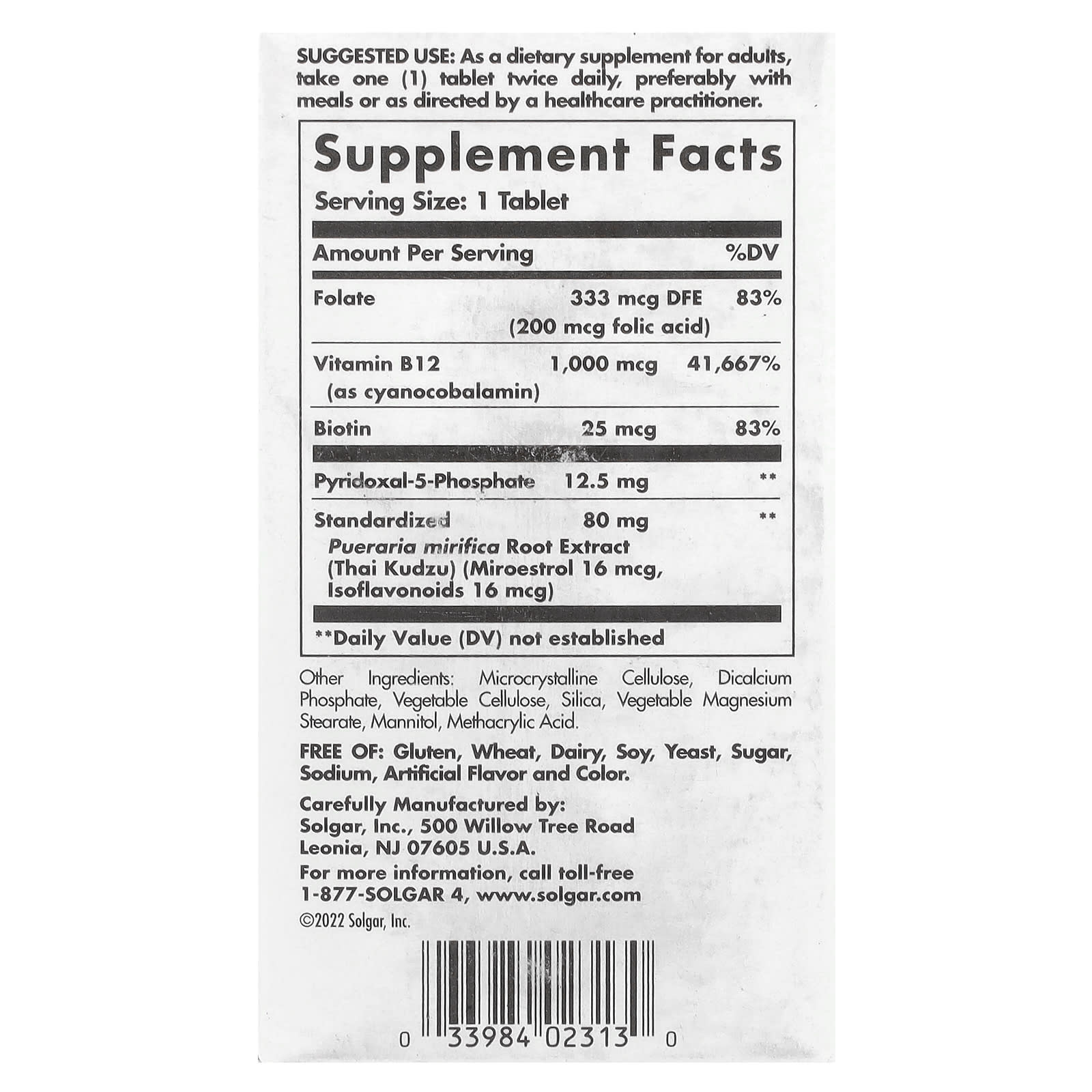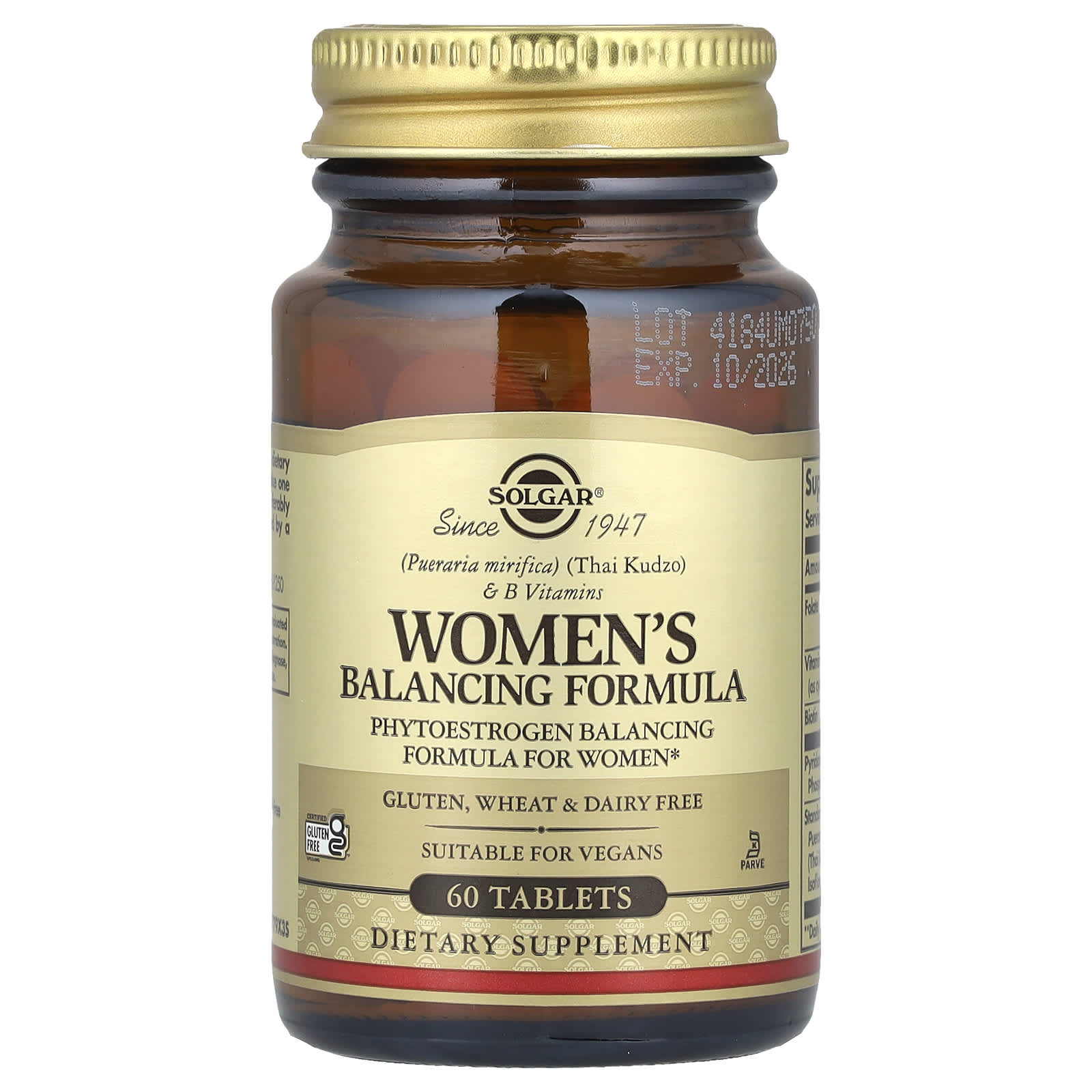 Средство для восстановления баланса для женщин от Solgar® включает экстракт тайского кудзу (Pueraria mirifica), стандартизированный до содержания 16 мкг в одной таблетке фитоэстрогена мироэстрола, который представляет собой растительное соединение, имитирующее эстроген в организме.