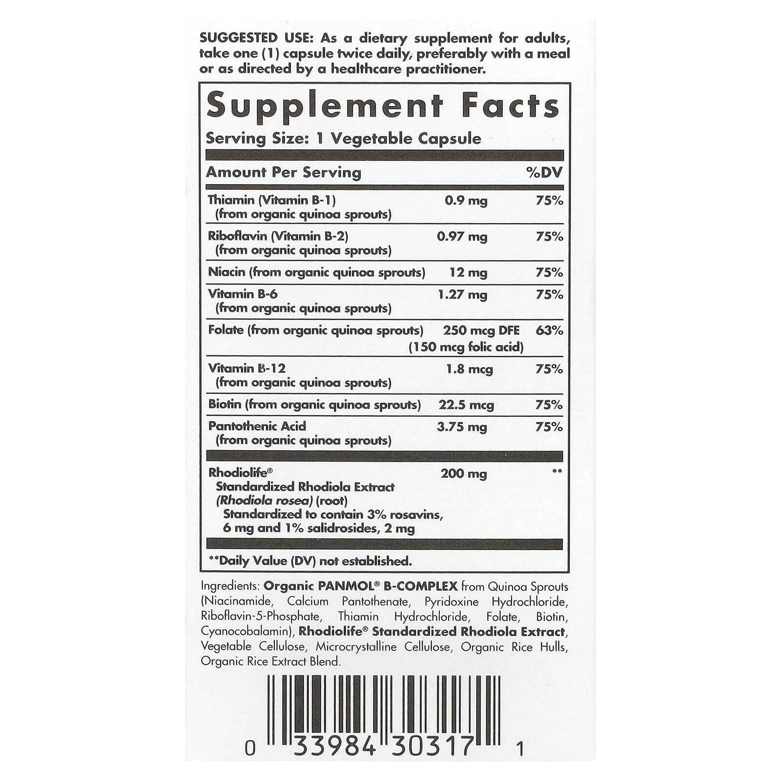 Solgar, Rhodiola & B-Complex, ежедневная поддержка при стрессе, 30 растительных капсул