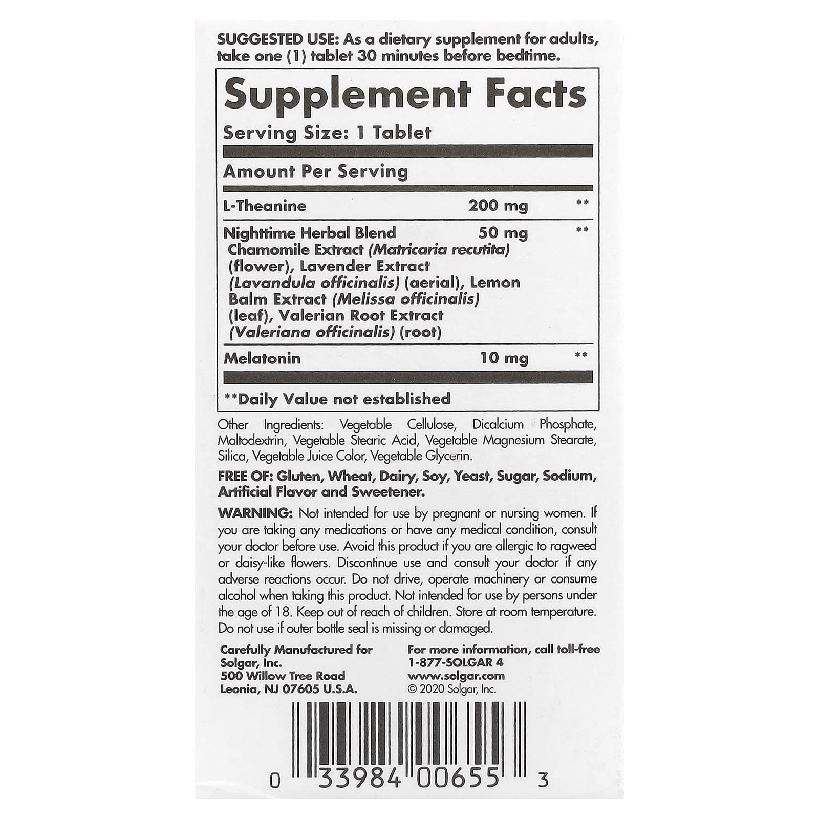 В основе таблетки тройного действия Solgar® — клинически изученная технология постепенного высвобождения, которая позволяет каждому слою таблеток растворяться в разное время в течение ночи. Так что это помогает вам расслабиться... Подарите себе хороший ночной сон... и проснитесь готовыми к новому дню!