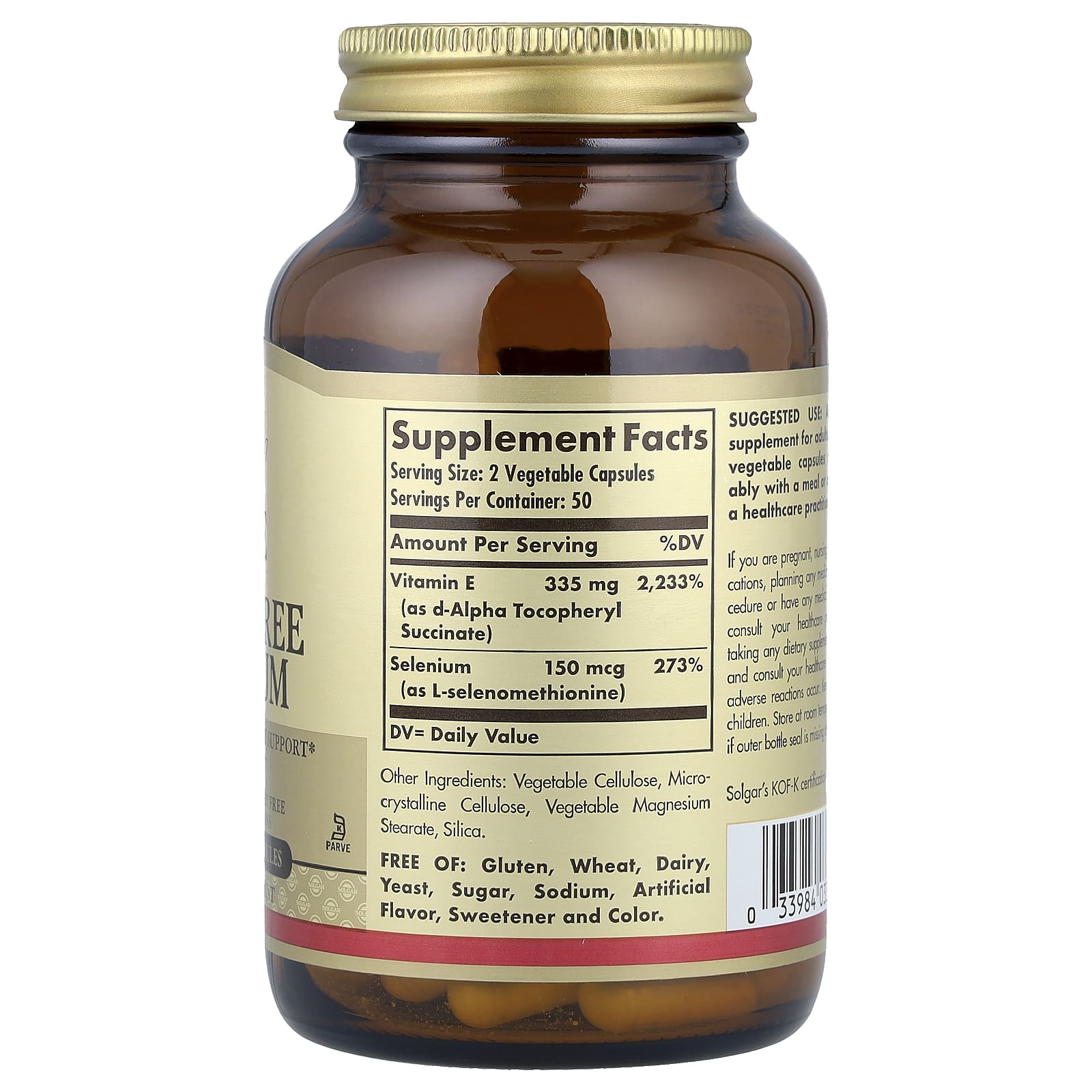 | Витамин E (в виде d-альфа-токоферил сукцината) | 335 мг | 2233% |