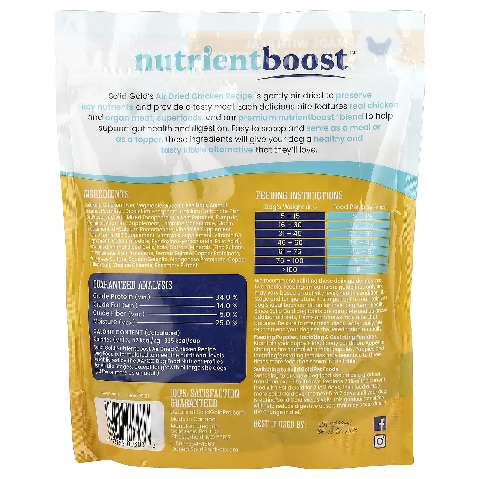 Рецепт сушеной курицы от Solid Gold бережно сушат на воздухе, чтобы сохранить основные питательные вещества и обеспечить вкусное блюдо. Каждый вкусный кусочек состоит из настоящей курицы и субпродуктов, суперфудов и нашей премиальной смеси Nutritionentboost ™, которая поддерживает здоровье кишечника и пищеварение. Эти ингредиенты, которые легко взять и подавать в качестве еды или топпера, дадут вашей собаке полезную и вкусную альтернативу корму, который ей понравится.