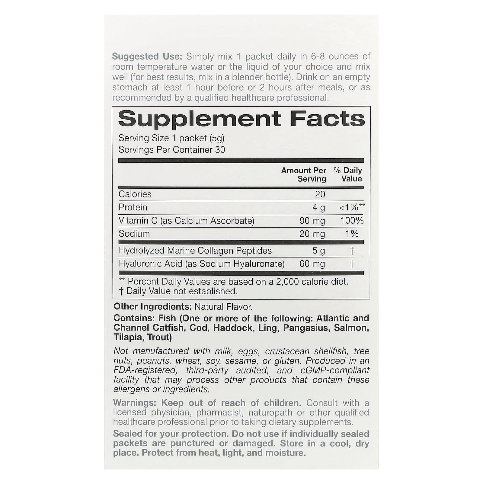 Витамин C (в виде аскорбата кальция), Натрий, пептиды гидролизованного морского коллагена, гиалуроновая кислота (в виде гиалуроната натрия)