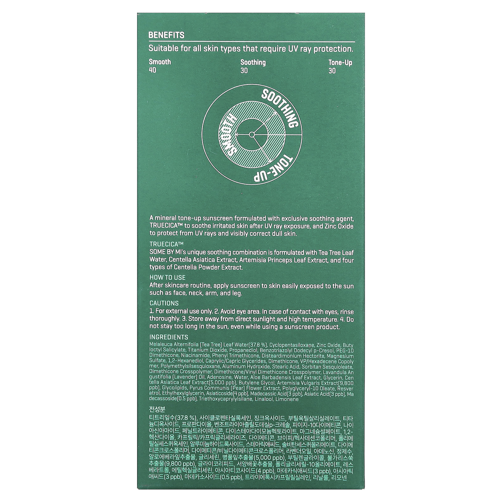 Уникальное сочетание успокаивающих компонентов в составе SOME BY MI включает воду из листьев чайного дерева, экстракт листьев полыни (Artemisia princeps), а также четыре типа экстрактов готу колы в форме порошка.
