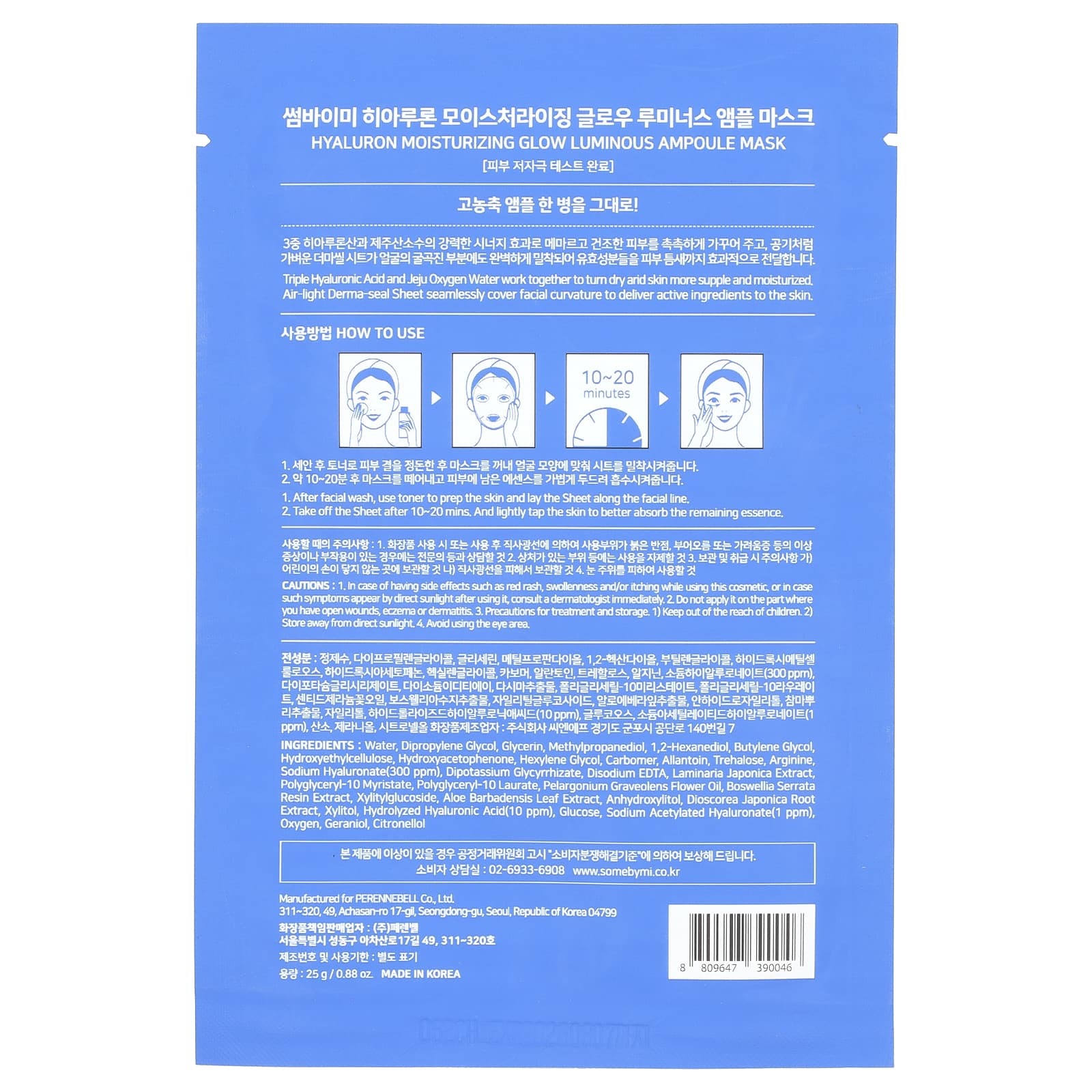 Вода, дипропиленгликоль, глицерин, метилпропандиол, 1,2-гександиол, бутиленгликоль, гидроксиэтилцеллюлоза, гидроксиацетофенон, гексиленгликоль, карбомер, аллантоин, трегалоза, аргинин, гиалуронат натрия (300 част./млн), дикалия глицирризат, двунатриевая ЭДТК, экстракт ламинарии японской (Laminaria japonica), полиглицерил-10 миристат, полиглицерил-10 лаурат, масло из цветков герани (Pelargonium graveolens), экстракт камеди босвеллии пильчатой (Boswellia serrata), ксилитилглюкозид, экстракт листьев алоэ вера (Aloe barbadensis), ангидроксилитол, экстракт корня диоскореи японской (Dioscorea japonica), ксилитол, гидролизованная гиалуроновая кислота (10 част./млн), глюкоза, ацетилированный гиалуронат натрия (1 част./млн), кислородом, гераниола, цитронеллола.