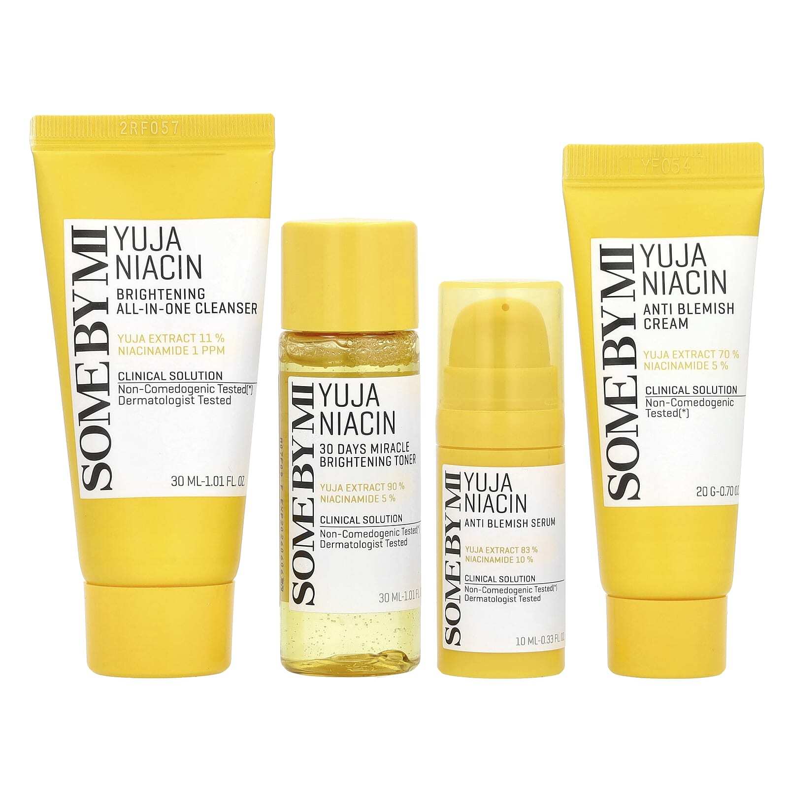 Набор с никотинамидом и экстрактом юя, который интенсивно ухаживает за темными пятнами после проблем.