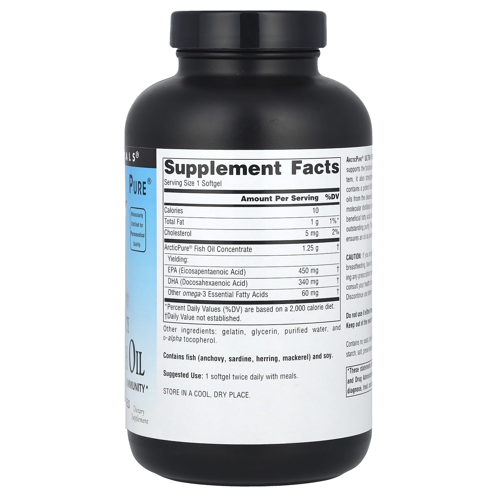Омега-3 рыбий жир Arcticpure® Ultra Potency не только поддерживает функции мозга, суставов и системы кровообращения, но и укрепляет иммунную систему. Каждая желатиновая капсула содержит 850 мг омега-3. В ArcticPure® используется рыбий жир из самых чистых источников на Земле. В процессе очистки на молекулярном уровне из неочищенного жира экстрагируются и концентрируются полезные жирные кислоты, обеспечивая исключительную чистоту продукта. Ультрасовременный процесс инкапсуляции гарантирует чистоту масла, как любое масло, доступное во всем мире.
