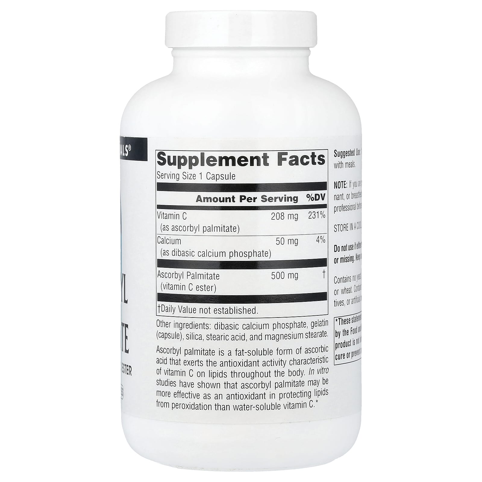 Аскорбил пальмитат — это жирорастворимая форма аскорбиновой кислоты, которая оказывает антиоксидантную активность, характерную для витамина C, в отношении липидов во всем организме. Исследования в лабораторных условиях показали, что аскорбил пальмитат в качестве антиоксиданта может быть более эффективным для защиты липидов от перекисного окисления, чем водорастворимый витамин С.