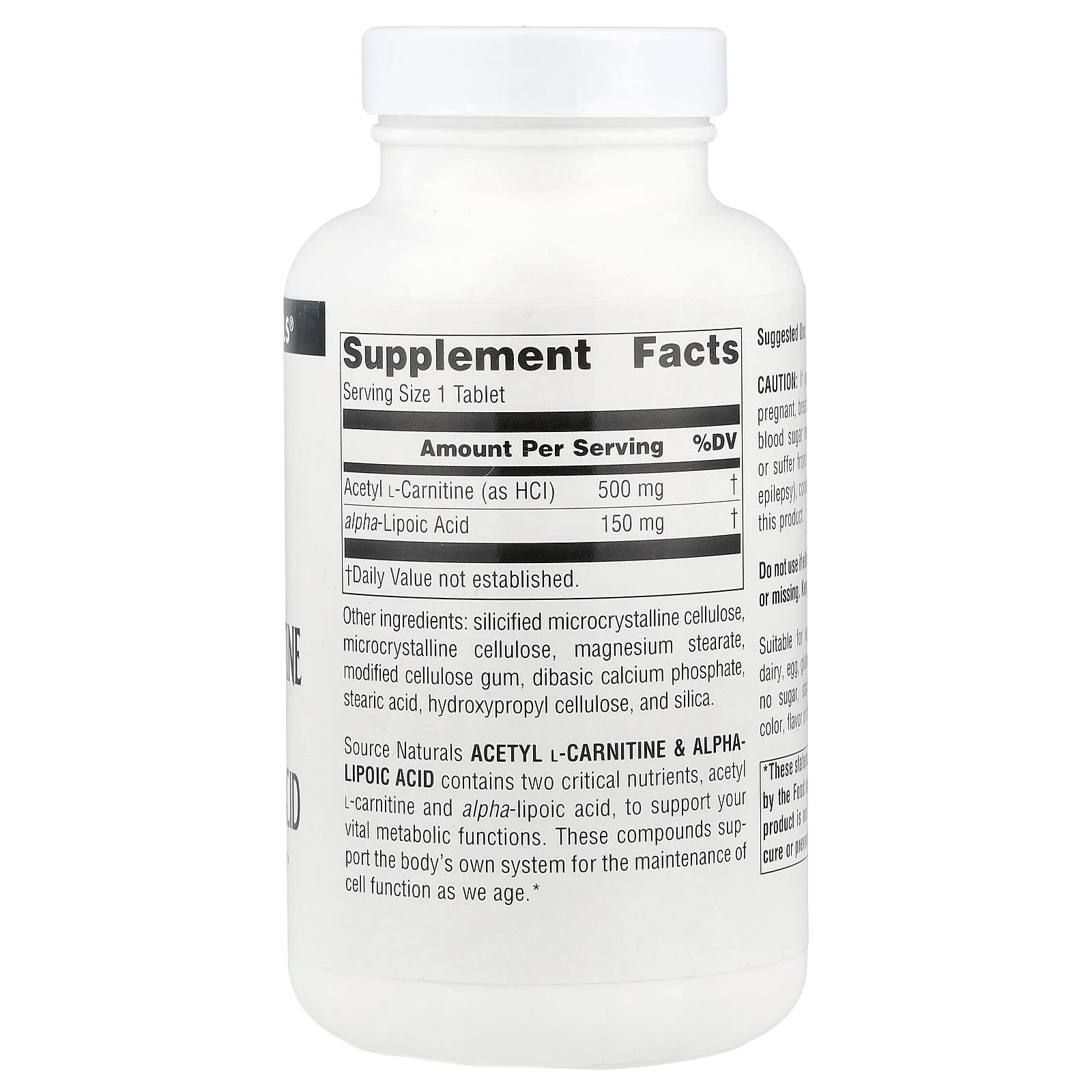Ацетил-L-карнитин и альфа-липоевая кислота Source Naturals содержит два важнейших питательных вещества, ацетил-L-карнитин и альфа-липоевую кислоту, для поддержки жизненно важных метаболических функций. Эти соединения помогает системе организма поддерживать функции клеток по мере старения.