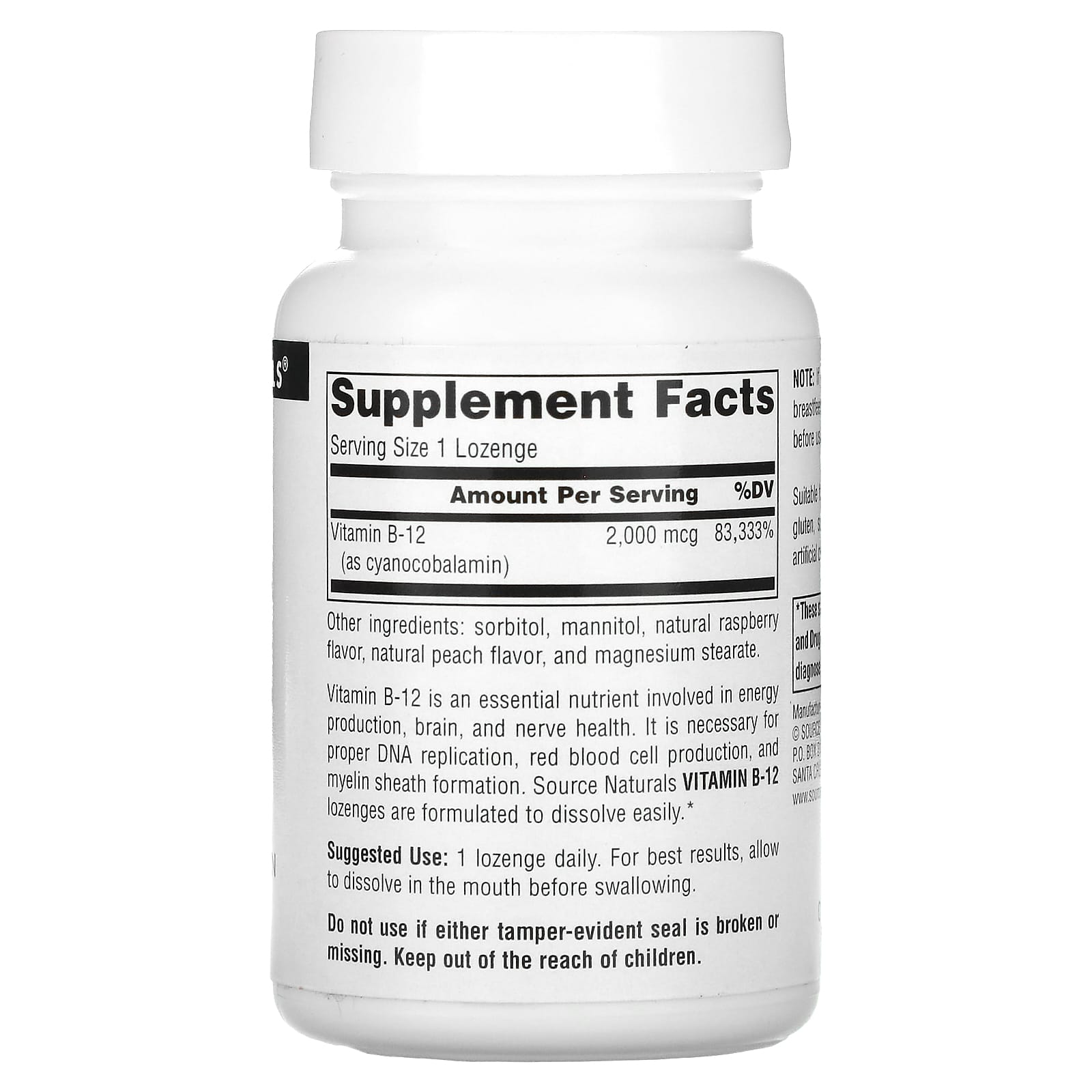 Витамин B12 является важным питательным веществом, участвующим в выработке энергии и способствующим здоровью мозга и нервной системы. Он также необходим для репликации ДНК, выработке красных кровяных клеток и образования миелиновой оболочки. Леденцы с витамином B12 от Source Naturals легко растворяются во рту.