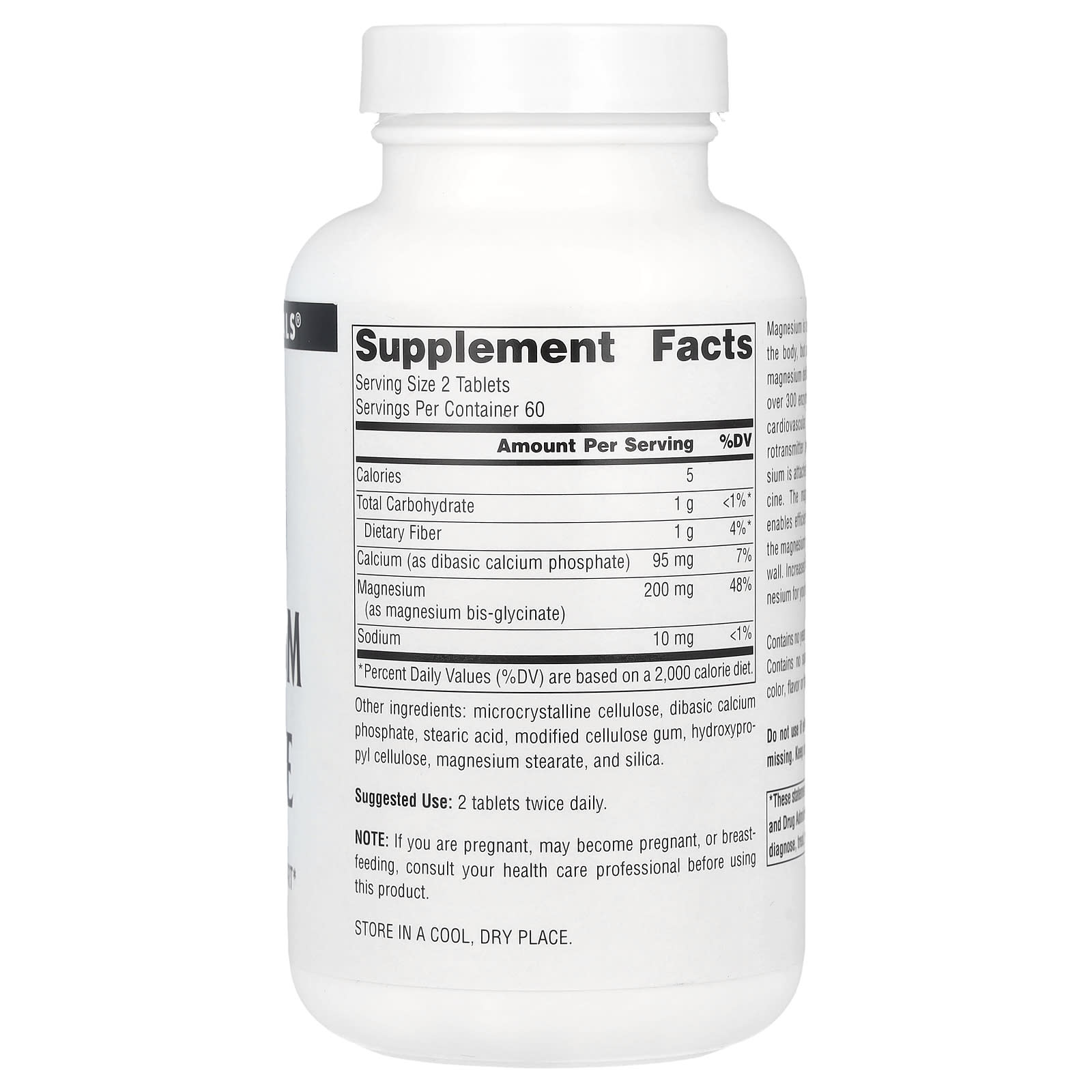 Магний - один из важнейших минералов в организме, но примерно 75% американцев испытывают дефицит магния. Магний играет ключевую роль в более чем 300 ферментативных реакциях, включая поддержку сердечно-сосудистой системы, костей, мышц, энергии и нейротрансмиттерных процессов. Магний Source Naturals присоединен («хелатирован») к аминокислоте глицину. Комбинация бис-глицината магния обеспечивает эффективное всасывание, а глицинат позволяет магнию легко переноситься через стенку кишечника. Повышенное усвоение означает, что ваш организм может использовать больше магния.