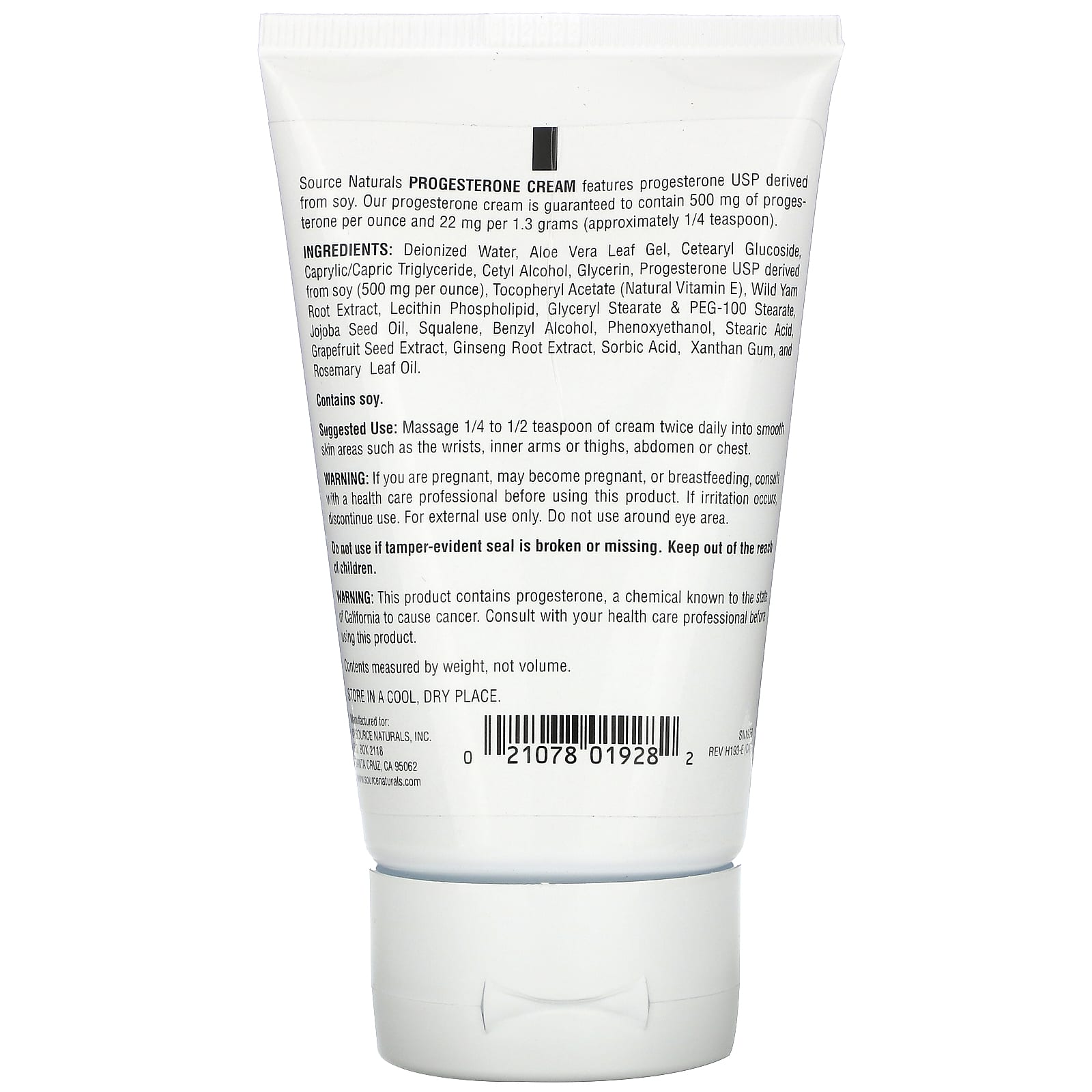 Крем с прогестероном Source Naturals содержит полученный из сои прогестерон, отвечающий требованиям фармакопеи США. Наш крем с прогестероном гарантированно содержит 500 мг прогестерона на 28 г (1 унцию) и 22 мг на 1,3 г (примерно 1/4 чайной ложки).