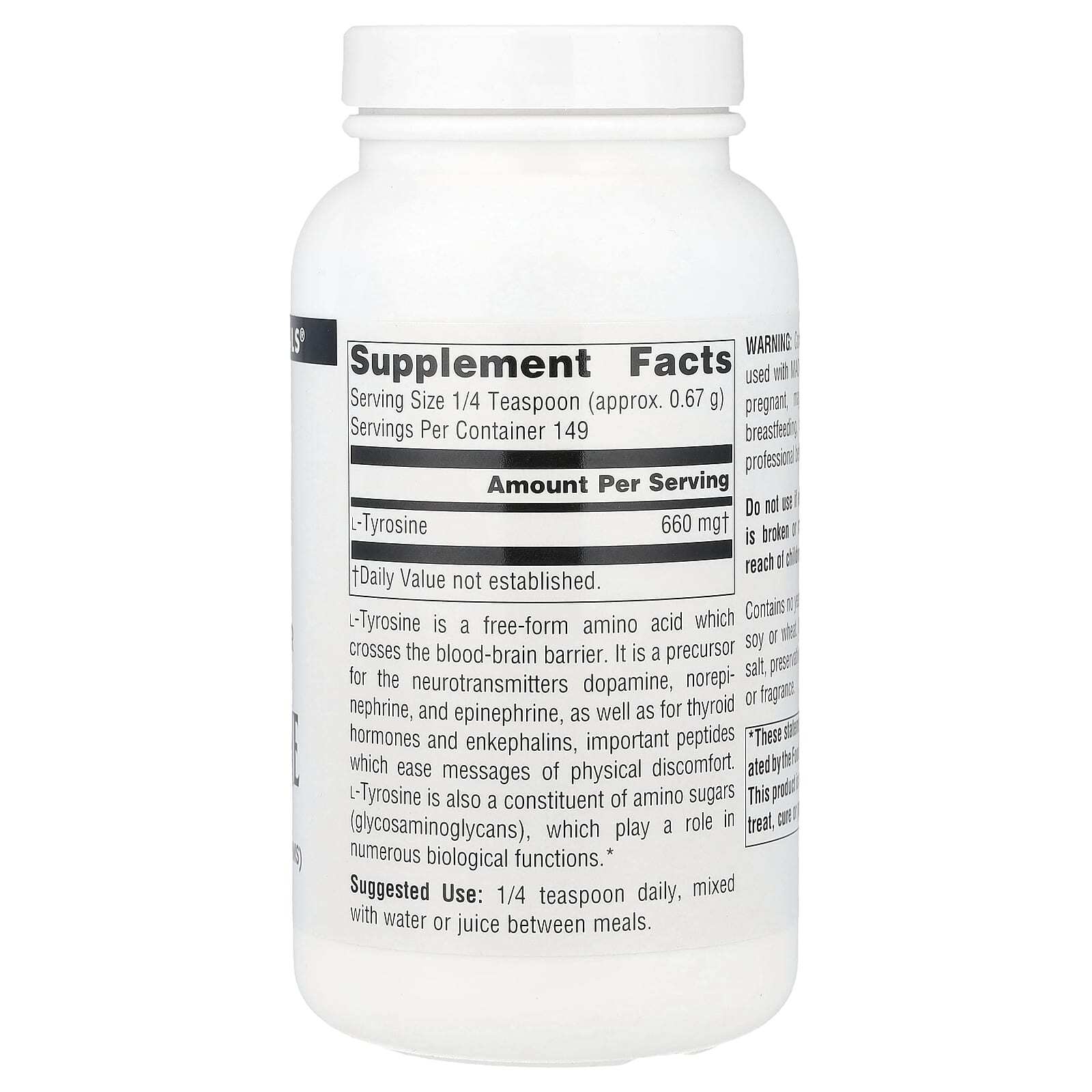 L-тирозин — это аминокислота в свободной форме, которая проникает через гематоэнцефалический барьер. Он является прекурсором нейромедиаторов дофамина, норэпинефрина и эпинефрина, а также гормонов щитовидной железы и энкефалинов, важных пептидов, которые облегчают сообщения физического дискомфорта. L-тирозин также входит в состав аминосахаров (гликозаминогликанов), которые играют важную роль в многочисленных биологических функциях.