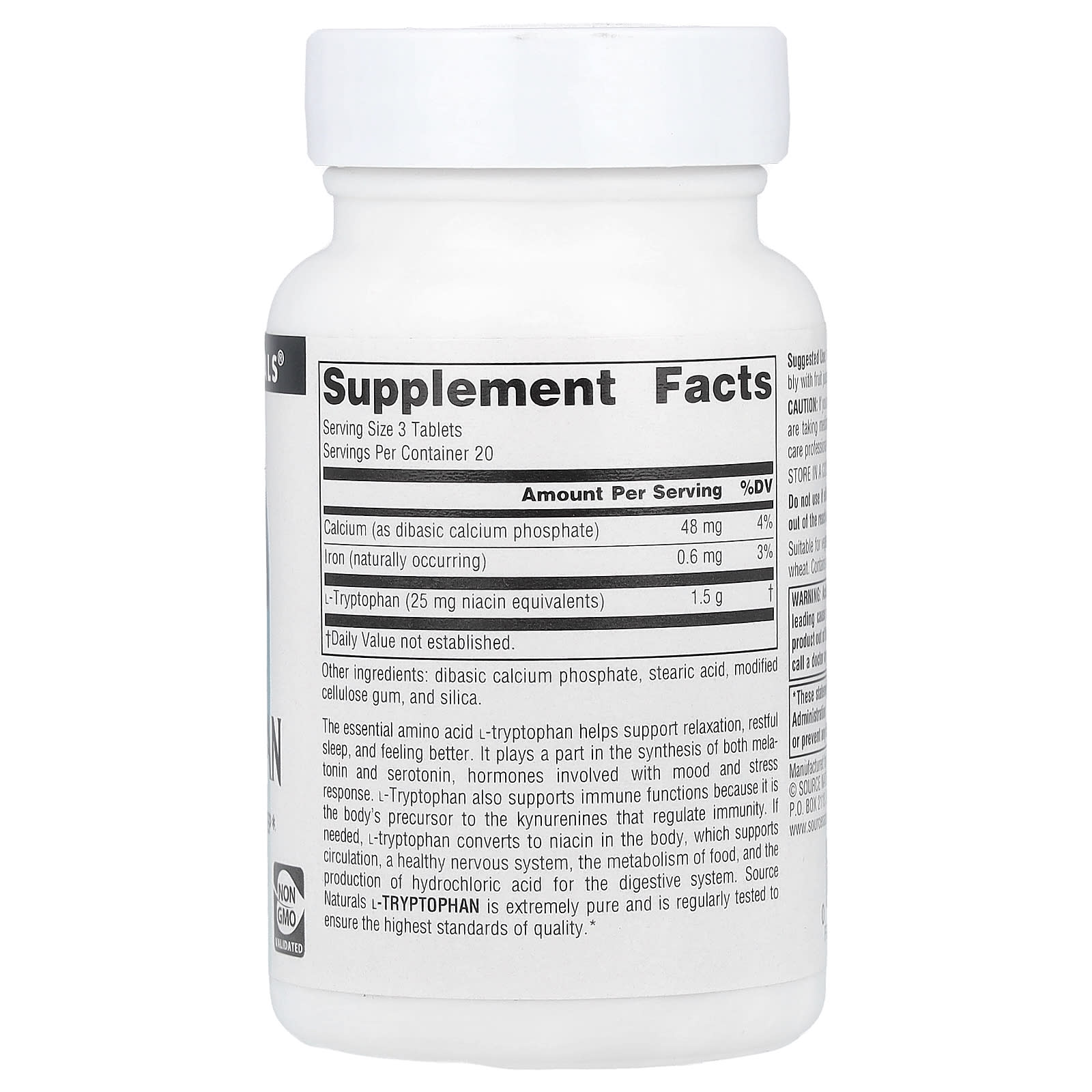Незаменимая аминокислота L-триптофан способствует расслаблению, спокойному сну и улучшению самочувствия. Он участвует в синтезе мелатонина и серотонина, гормонов, влияющих на настроение и стрессовую реакцию. L-триптофан также поддерживает иммунные функции, поскольку является предшественником кинуренинов, регулирующих иммунитет. При необходимости L-триптофан в организме превращается в ниацин, который поддерживает кровообращение, здоровье нервной системы, метаболизм пищи и выработку соляной кислоты для пищеварительной системы. L-триптофан Source Naturals чрезвычайно чистый и регулярно тестируется для обеспечения высочайших стандартов качества.