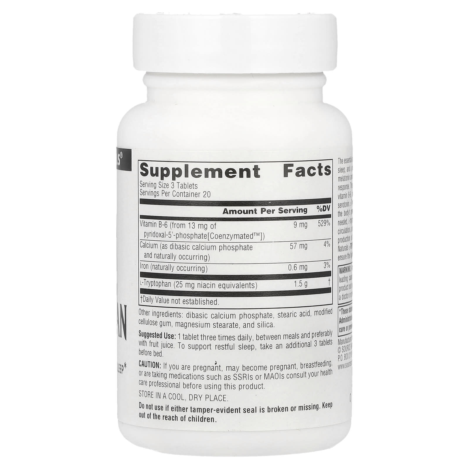 Незаменимая аминокислота L-триптофан способствует расслаблению, спокойному сну и позитивному настрою. Он играет важную роль в синтезе мелатонина и серотонина, гормонов, связанных с настроением и реакцией на стресс. Этот триптофан содержит активированную коферментную форму витамина B6, называемую P-5-P, которая необходима для преобразования триптофана в серотонин. L-триптофан также поддерживает иммунные функции, поскольку в организме он является предшественником кинуренинов, которые регулируют иммунитет. При необходимости L-триптофан превращается в ниацин в организме, который поддерживает кровообращение, здоровье нервной системы, метаболизм пищи и выработку соляной кислоты для пищеварительной системы. L-триптофан Source Naturals — это продукт высокой чистоты, который регулярно проверяется на соответствие самым высоким стандартам качества.