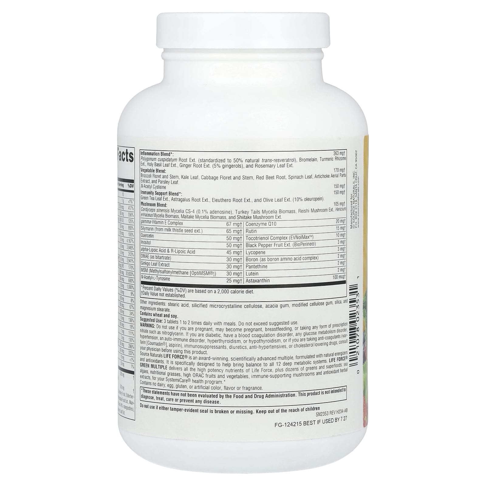 Source Naturals Life Force® - это отмеченный наградами, научно продвинутый комплекс, в состав которого входят натуральные энергетические добавки и антиоксиданты. Он специально разработан, чтобы помочь сбалансировать все 12 систем глубокого обмена веществ. Life Force® Green Multiple содержит все высокоэффективные питательные вещества Life Force, а также десятки видов зелени и суперпродуктов: морские водоросли, питательные травы, фрукты и овощи с высоким содержанием ORAC, поддерживающие иммунитет грибы и антиоксидантные растительные экстракты для вашей программы по поддержанию здоровья SystemiCare®.
