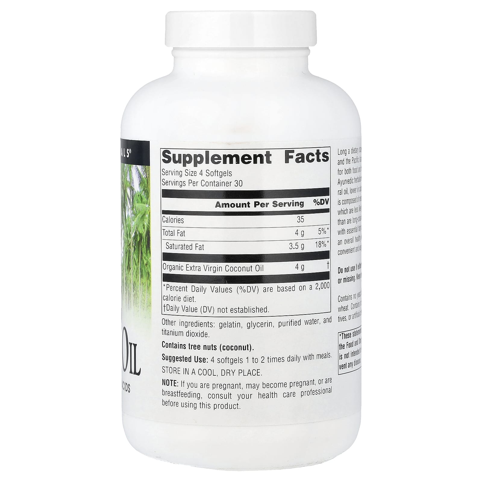 Кокосовое масло, которое давно является основным продуктом питания людей из Азии, Африки и островов Тихого океана, используется как в качестве продукта питания, так и для поддержания здоровья. Оно используется в аюрведической фитотерапии в течение 4000 лет. Это натуральное масло, которое содержит меньше калорий, чем большинство масел. Кокосовое масло состоит из среднецепочечных триглицеридов (MCT), которые с меньшей вероятностью отлагаются в организме в виде жира, чем длинноцепочечные триглицериды (LCT). В сочетании с незаменимыми жирными кислотами масло является идеальным дополнением для комплексной поддержки здорового липидного профиля. Мягкие капсулы удобно и легко глотать.