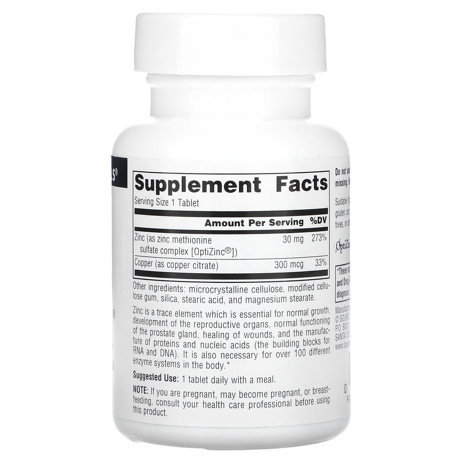 | Цинк (в виде комплекса сульфата метионина цинка [OptiZinc®]) | 30 мг | 273% |