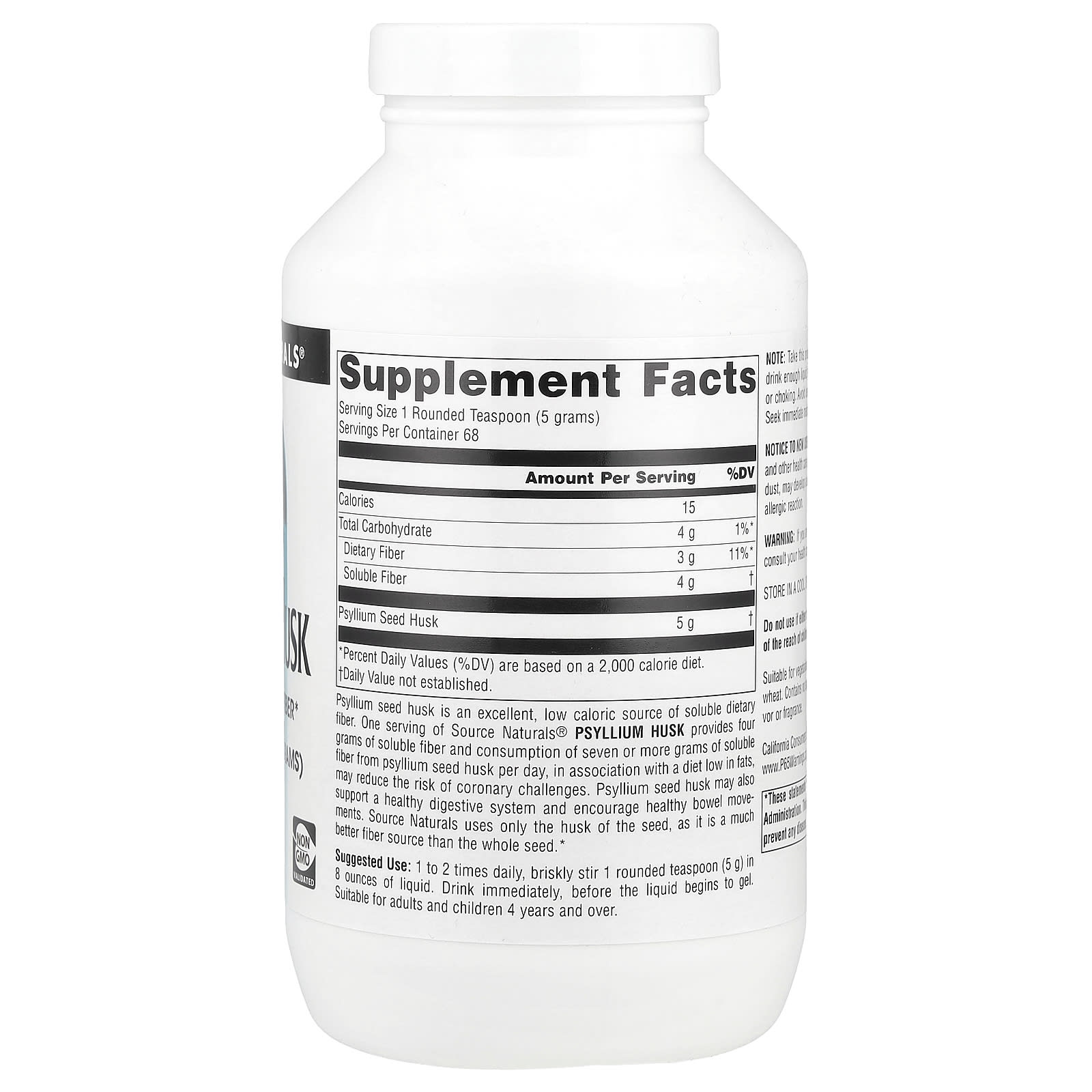 Шелуха семян подорожника — это отличный низкокалорийный источник растворимой пищевой клетчатки. Одна порция шелухи семян подорожника от Source Naturals® обеспечивает четыре грамма растворимой клетчатки, а потребление семи или более граммов растворимой клетчатки из шелухи семян подорожника в день в сочетании с рационом с низким содержанием жиров может снизить риск ишемической болезни сердца. Шелуха семян подорожника также может поддерживать здоровье пищеварительной системы и способствует здоровой перистальтике кишечника. Source Naturals содержит только шелуху семян, так как это гораздо лучший источник клетчатки, чем целые семена.