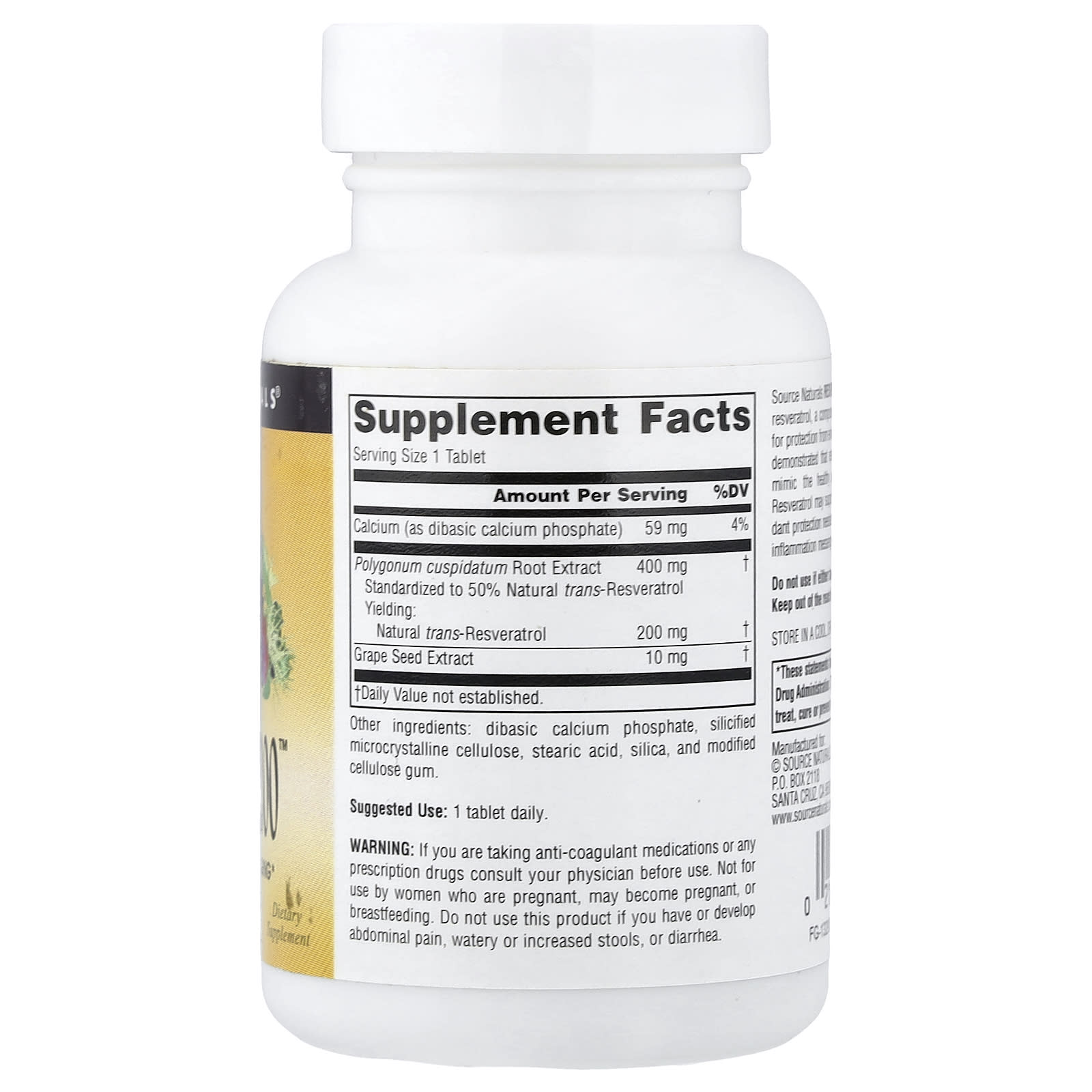 Resveratrol 200™ от Source Naturals содержит 200 мг чистого ресвератрола, соединения, вырабатываемого виноградом и другими растениями для защиты от неблагоприятных факторов окружающей среды. Недавние исследования показали, что ресвератрол активирует гены SIRT I, которые имитируют преимущества для здорового старения за счет ограничения калорийности. Ресвератрол может поддерживать здоровье сердца, обеспечивая антиоксидантную защиту, необходимую для здорового кровообращения, а также подавляя посредники воспаления, включая NF каппа B.