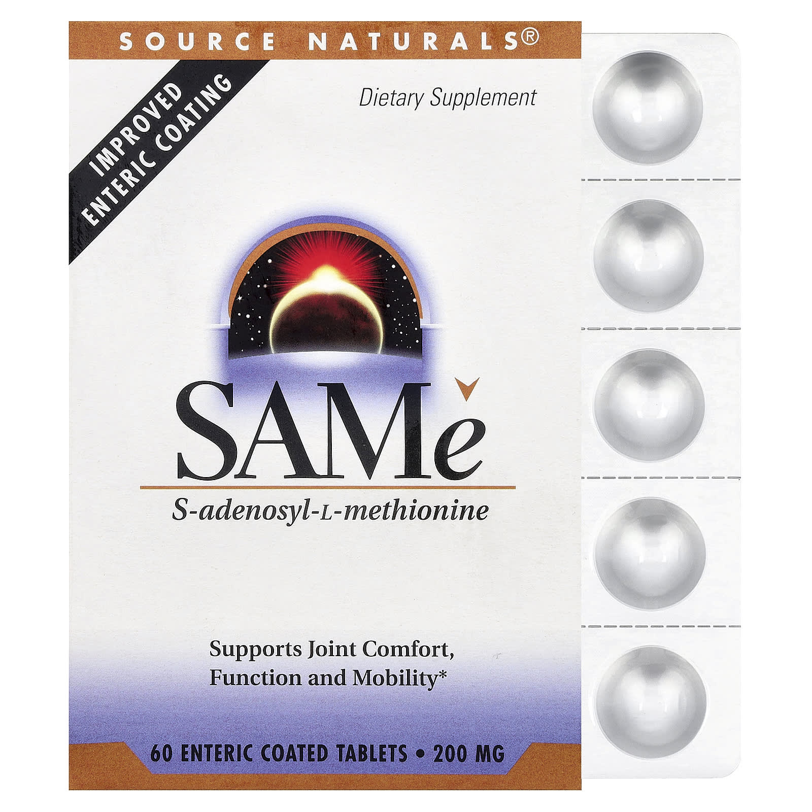 SAMe от Source Naturals® - это стабильная биодоступная форма S-аденозил-L-метионина. Эти таблетки имеют кишечнорастворимую оболочку и упакованы в блистеры для обеспечения стабильного качества и оптимальной биологической активности. SAMe присутствует в каждой живой клетке организма и играет важную роль во многих важных клеточных функциях.