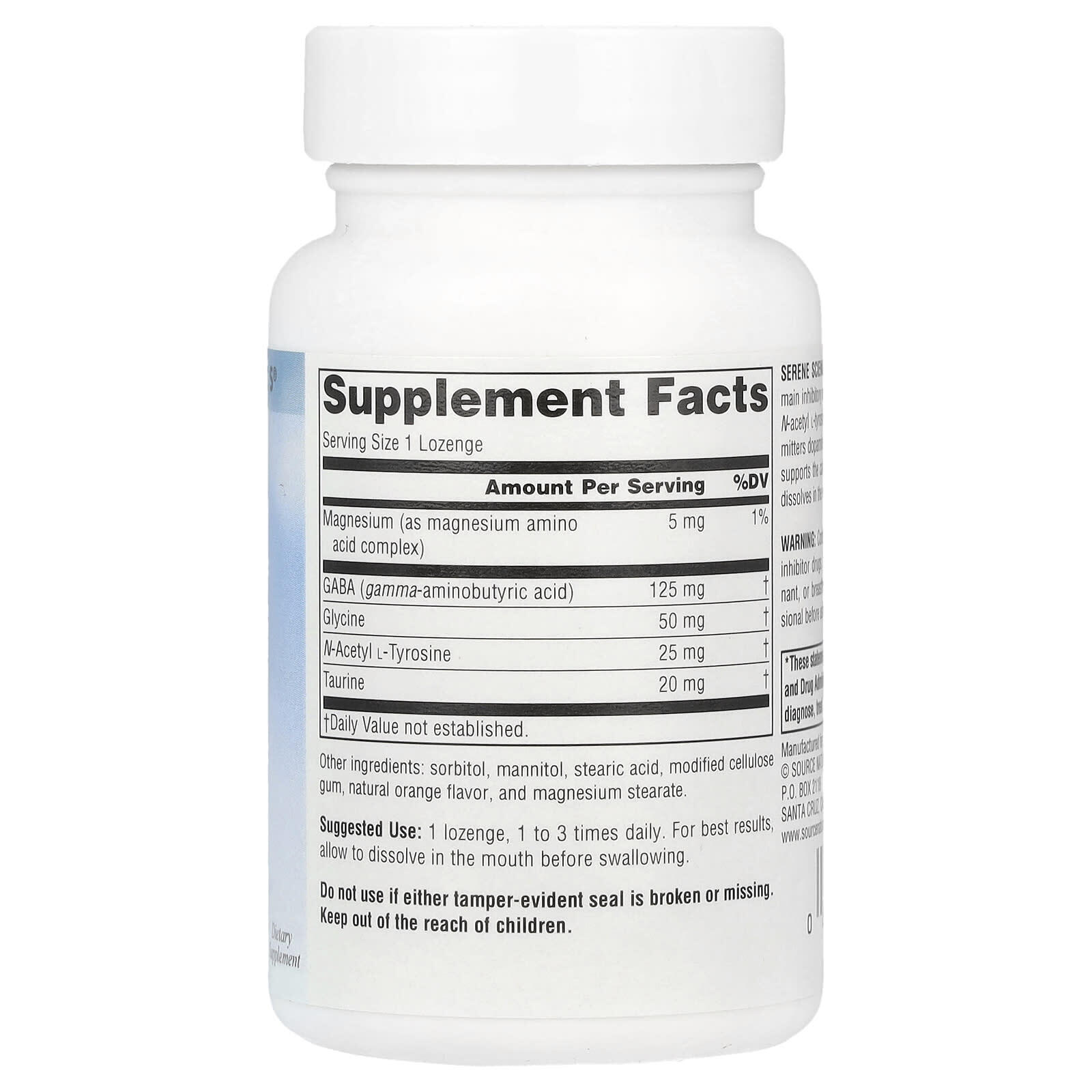 Serene Science® GABA Calm® сочетает в себе два основных ингибирующих нейромедиатора, ГАМК и глицин, с N-ацетил L-тирозином, который является предшественником нейромедиаторов дофамина и норадреналина. Кроме того, таурин поддерживает успокаивающий эффект ГАМК. Пастилки растворяются во рту, обеспечивая быструю и удобную доставку.