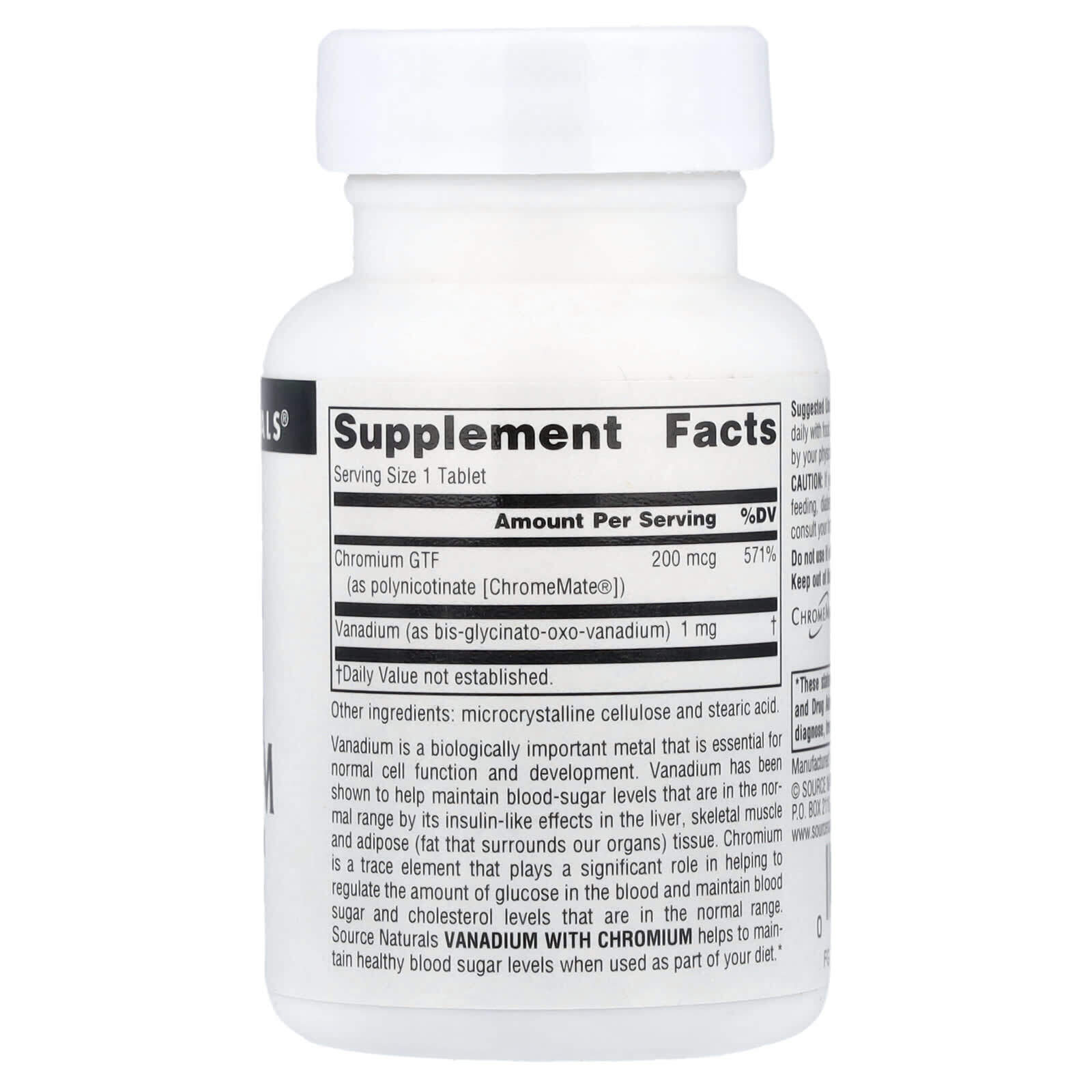 Ванадий — биологически важный металл, который необходим для нормального функционирования и развития клеток. Было доказано, что ванадий помогает поддерживать уровень сахара в крови в нормальном диапазоне за счет инсулиноподобного действия на печень, скелетные мышцы и жировую ткань (жир, окружающий наши органы). Хром — это микроэлемент, который играет важную роль в регулировании количества глюкозы в крови и поддержании нормального уровня сахара и холестерина в крови. При использовании ванадия с хромом от Source Naturals он помогает поддерживать здоровый уровень сахара в крови.
