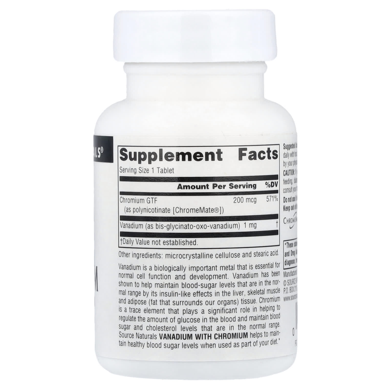 Ванадий — это биологически важный металл, необходимый для нормального функционирования и развития клеток. Было доказано, что ванадий помогает поддерживать нормальный уровень сахара в крови благодаря его инсулиноподобному действию на печень, скелетные мышцы и жировую ткань (жир, окружающий наши органы). Хром — это микроэлемент, который играет важную роль в регулировании уровня глюкозы в крови и поддержании нормального уровня сахара и холестерина в крови. Ванадий с хромом от Source Naturals помогает поддерживать здоровый уровень сахара в крови при использовании в рамках вашего рациона.