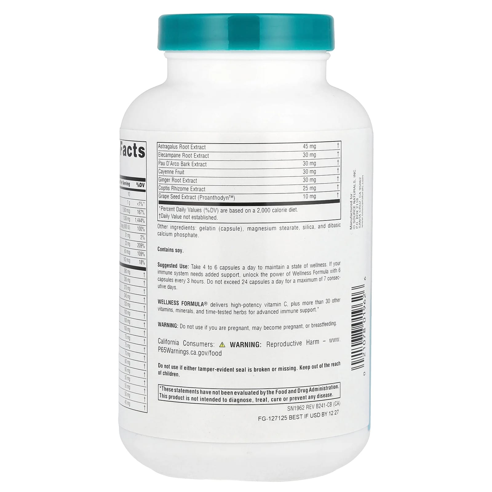 Wellness Formula® содержит высокоэффективный витамин С, а также более 30 других витаминов, минералов и проверенных временем трав для ежедневной усиленной поддержки иммунитета.