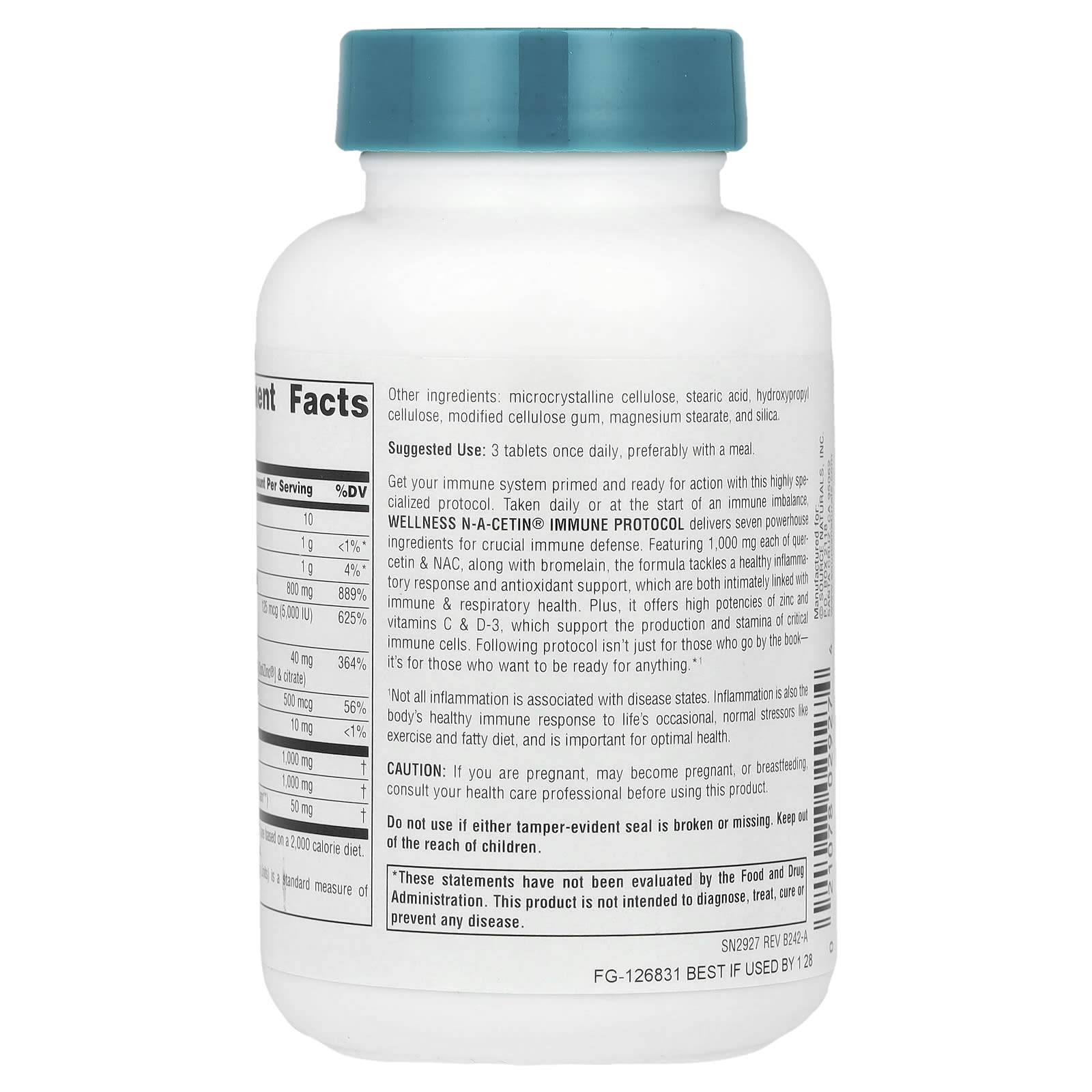 Подготовьте свою иммунную систему к действию с помощью этого узкоспециализированного протокола. Принимать ежедневно или в начале иммунного дисбаланса. WELLNESS NA-CETIN® IMMUNE PROTOCOL содержит семь мощных ингредиентов для жизненно важной иммунной защиты. Формула содержит по 1000 мг кверцетина и NAC, а также бромелаина, способствует здоровой воспалительной реакции и оказывает антиоксидантную поддержку, которые тесно связаны со здоровьем иммунной и респираторной систем. Кроме того, он содержит высокую эффективность цинка и витаминов C и D3, которые поддерживают выработку и выносливость важных иммунных клеток. Следование протоколу не только для тех, кто придерживается правил - это для тех, кто хочет быть готовым ко всему.