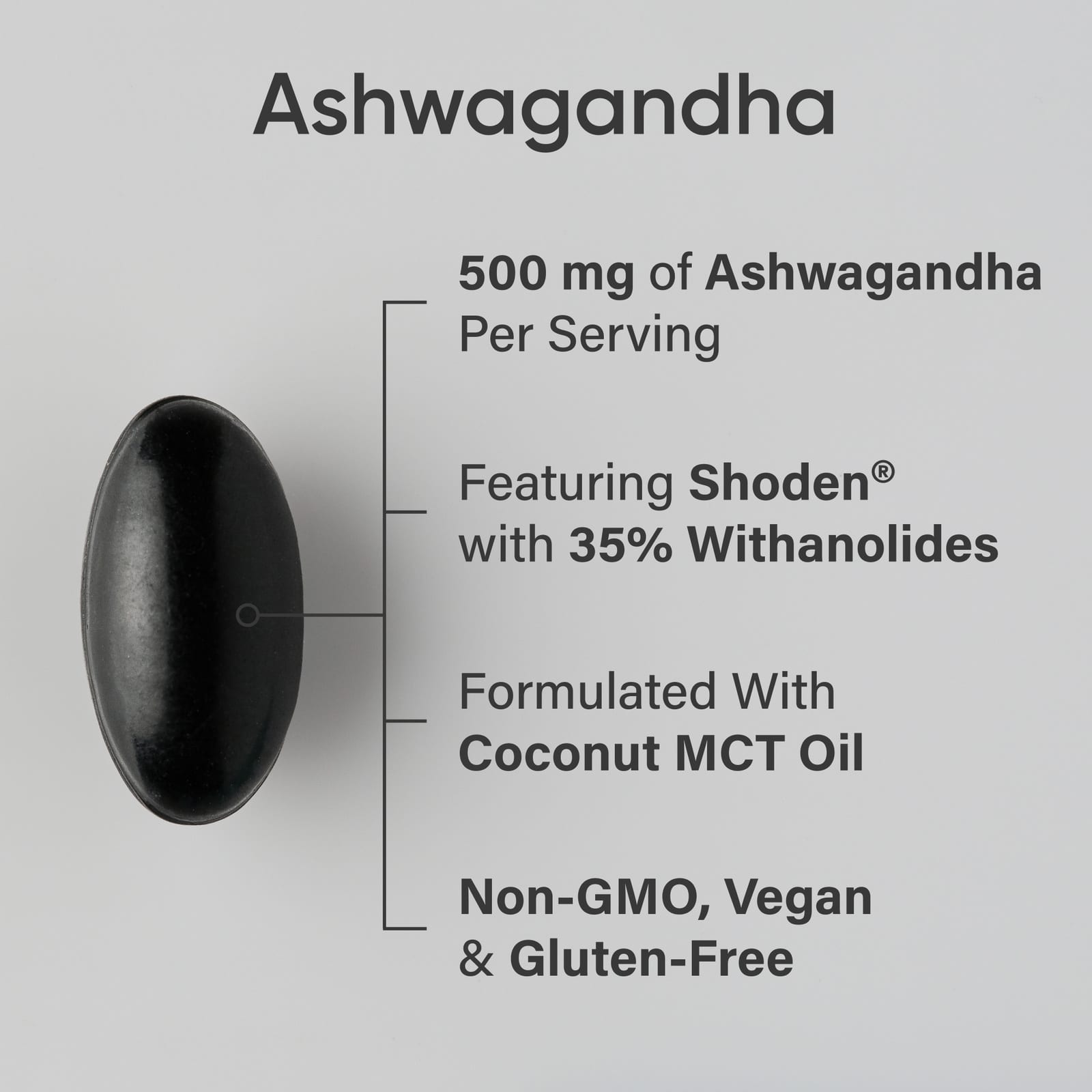 Капсула Plantgel™ (модифицированный тапиоковый крахмал без ГМО, растительный глицерин, очищенная вода, аннато [краситель]), кокосовое масло MCT, подсолнечный лецитин, воск из рисовых отрубей.