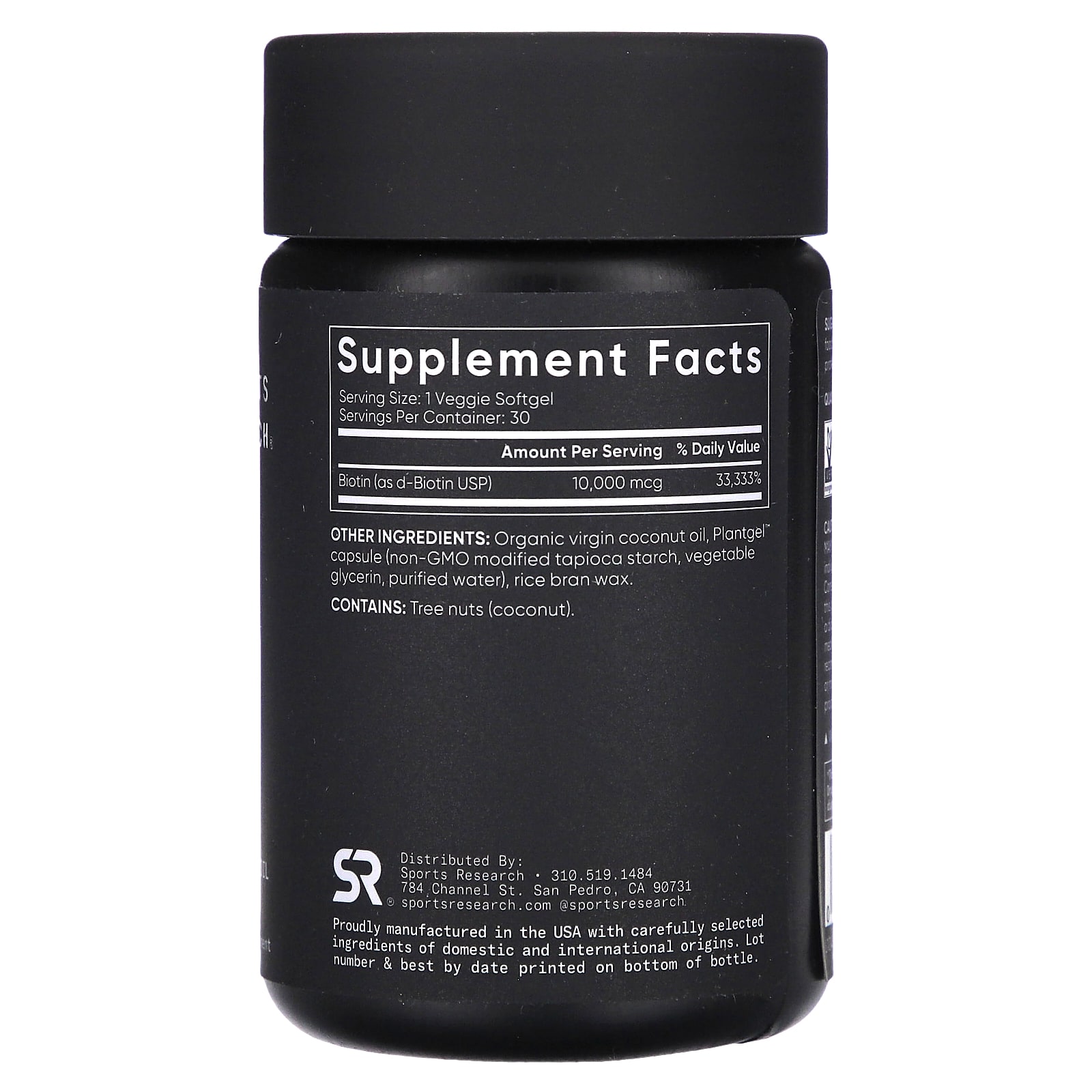 Sports Research, биотин и кокосовое масло, 10 000 мкг, 30 растительных капсул